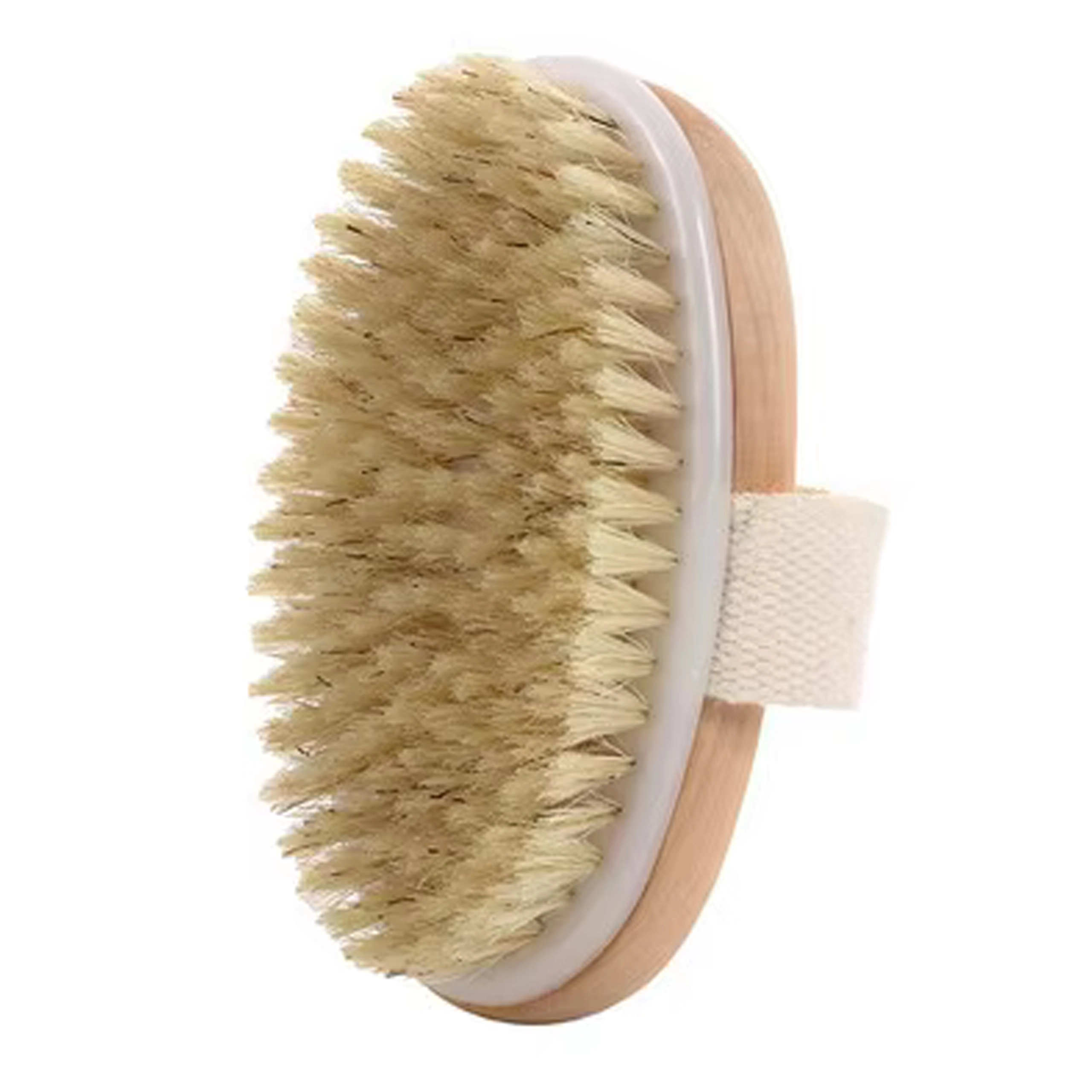 Tento oválný kartáč s přírodními štětinami je navržen pro efektivní péči o pokožku těla. Při suchém kartáčování podporuje prokrvení, zlepšuje lýmfatickou drenáž a viditelně vyhlazuje texturu pokožky. Při mokrém použití jemně peelinguje a připraví kůži na další péči, aby lépe vstřebávala krémy a oleje.