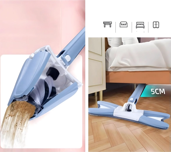 Díky skládací X konstrukci se mop snadno dostane do rohů, pod nízký nábytek a kolem nohou stolů. Lehká, ergonomická a výškově nastavitelná tyč zaručuje pohodlné používání bez zbytečného ohýbání zad. V balení najdete také náhradní mikrovláknový návlek pro delší životnost a hygienický úklid.