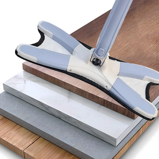 Mikrovláknový plochý návlek si poradí s prachem, tekutinami i odolnou špínou a je šetrný k dřevu, dlažbě i mramoru.