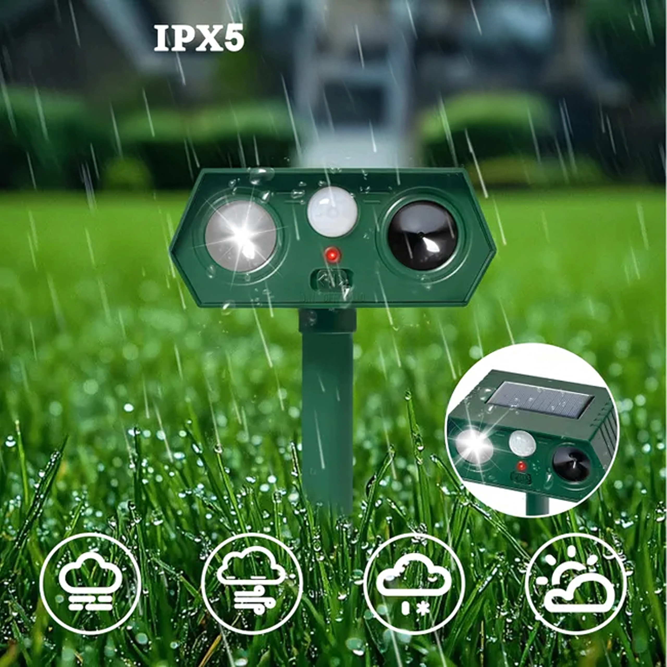 Chraňte zahradu bez chemie: tento solární ultrazvukový odpuzovač zvířat se snadnou instalací do země pomocí hrotu spolehlivě odhání kočky, psy, lišky, kuny, ptáky i hlodavce. Integrovaný PIR čidlo pohybu aktivuje ultrazvuk a výstražné LED záblesky, zatímco odolné provedení do každého počasí a napájení ze solárního panelu zajišťují bezúdržbový provoz. Balení obsahuje 2 kusy pro pokrytí větší plochy.