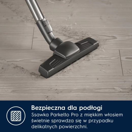 Výkonný sáčkový vysavač ELECTROLUX řady 600 s hubicí Dust Magnet Silent nabízí vysokou sací sílu a sběr až 100 % prachu ze spár. Díky filtraci HEPA zachytí až 99,99 % částic, má ovládání nohou pro pohodlné nastavení, tichý provoz, velký 12m akční rádius a je šetrný k životnímu prostředí díky recyklovaným plastům.