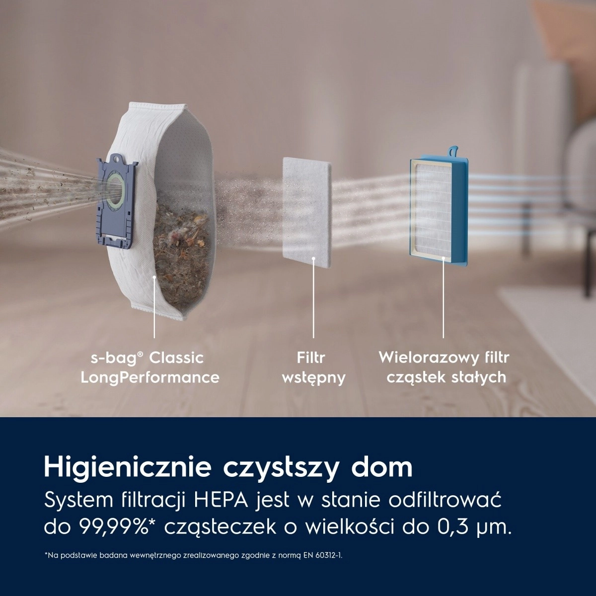 - HEPA, zachycení až 99,99 % částic 0,3 μm