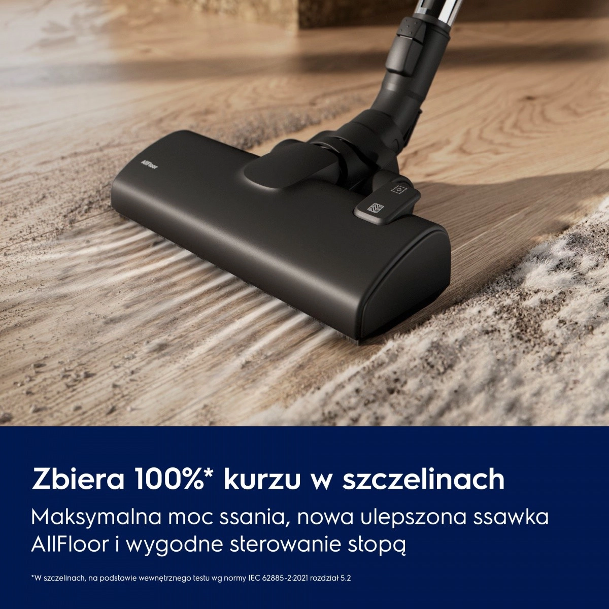 Vysavač dosahuje vysoké účinnosti sběru prachu ve spárách a s novou hubicí AllFloor si poradí s tvrdými podlahami i koberci. Přepnutí kartáče zvládnete pohodlně nohou.