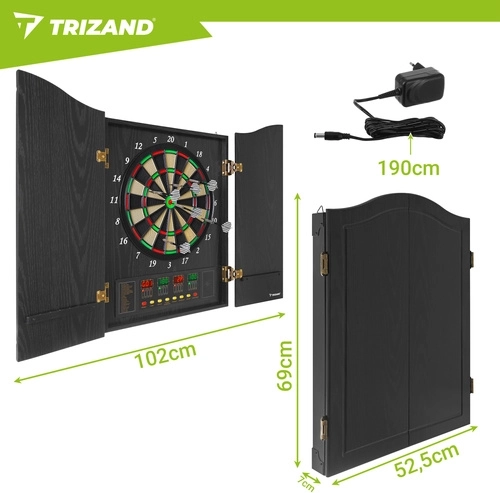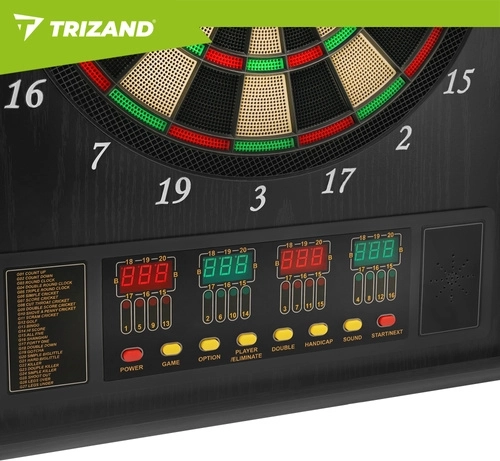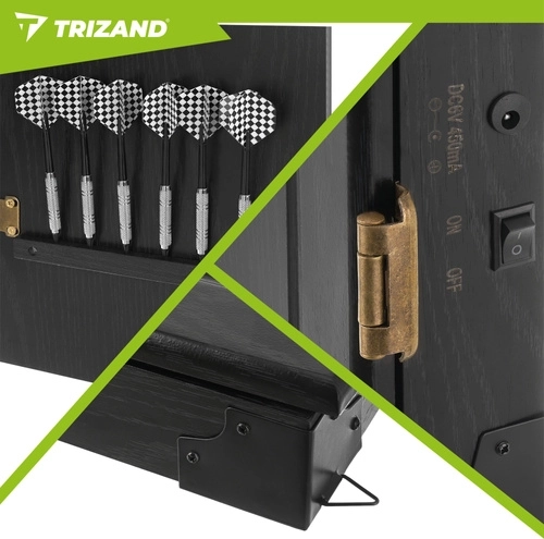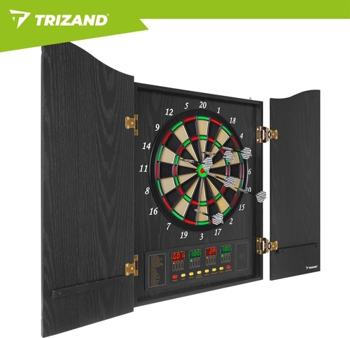 Elektronická šipková terč TRIZAND přináší moderní domácí zábavu pro rodinu i přátele. Díky automatické bodovací jednotce, regulaci hlasitosti a přehledným LED displejům máte výsledky stále pod kontrolou. Elegantní skříňka s dvířky chrání terč před prachem a skvěle zapadne do obýváku, herny i kanceláře.