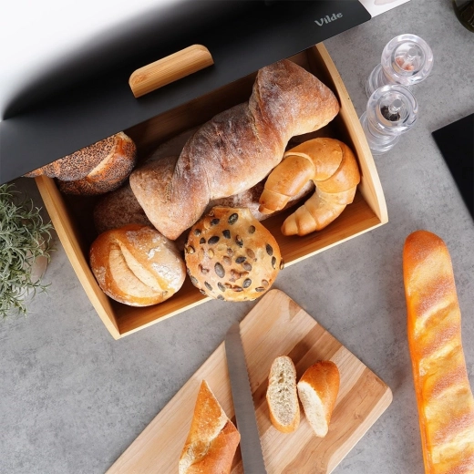 Konstrukce chlebníku omezuje přístup vzduchu, takže chléb a další pečivo zůstává déle měkké a chutné bez zbytečného vysychání.