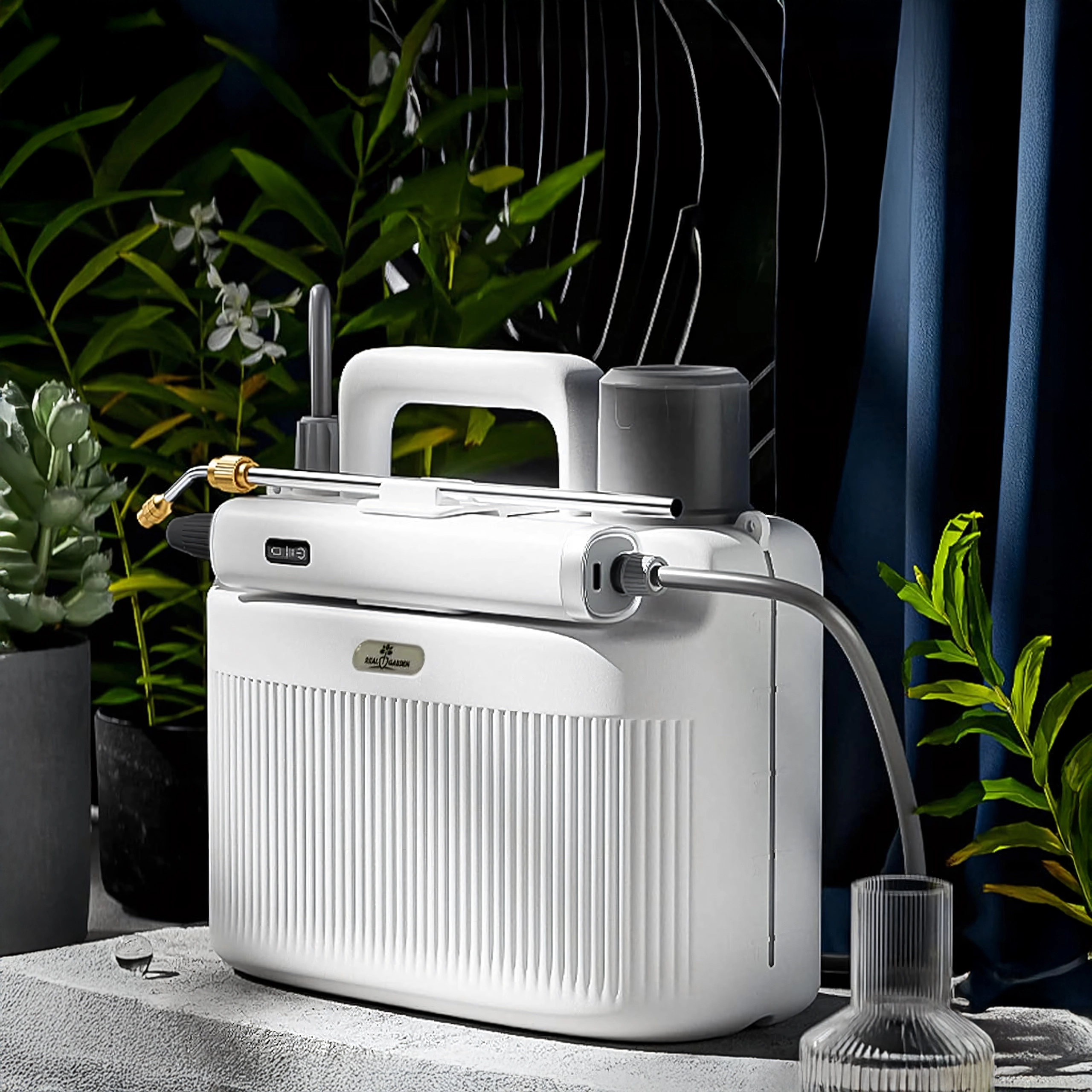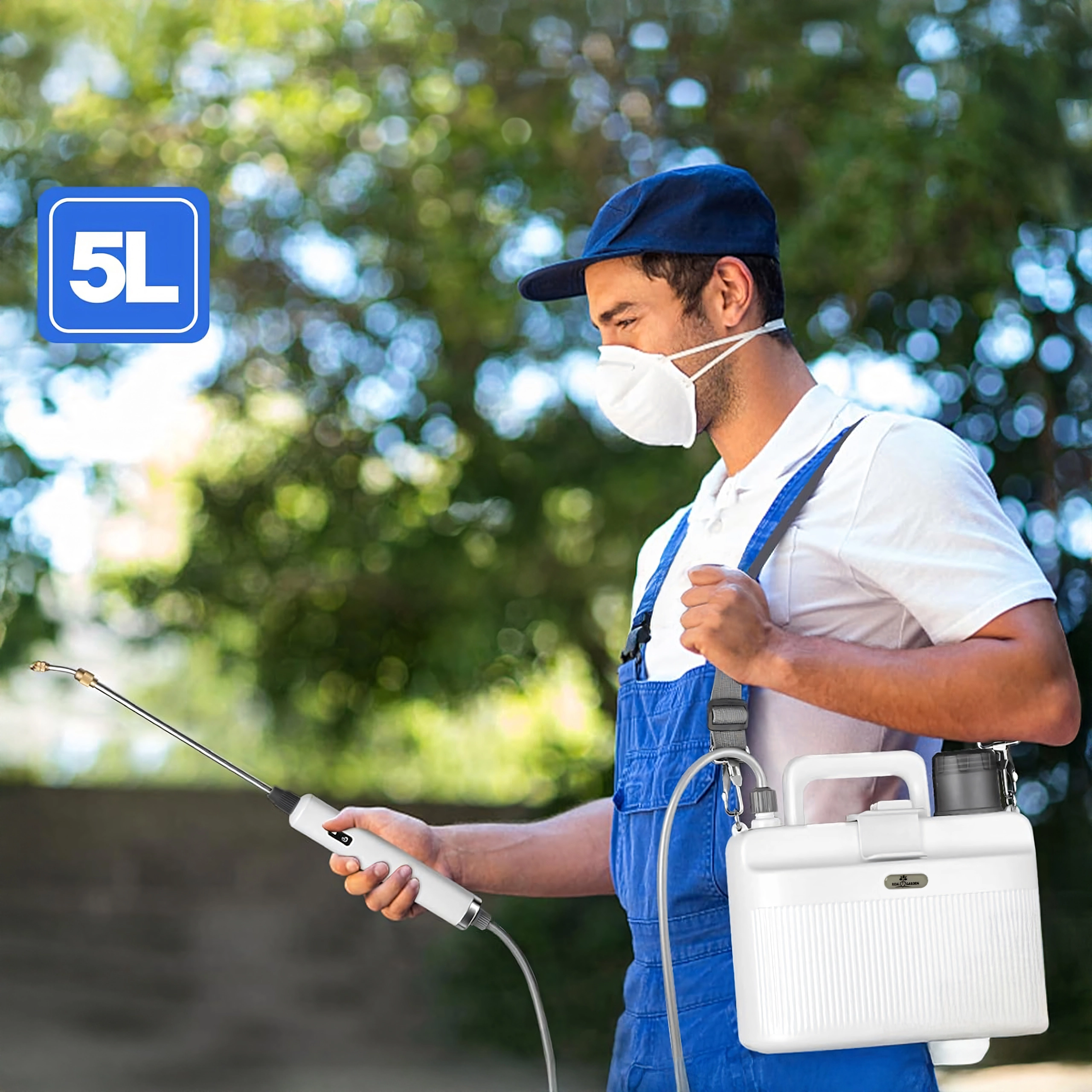 Zařízení je navrženo pro pohodlné nošení – kompaktní tvar, držadlo a nastavitelný popruh vám poskytnou volnost pohybu. Díky rovnoměrnému, jemnému rozprašování je ideální pro citlivé rostliny, ale také pro dezinfekční a čistící práce na terasách, nábytku a veřejných prostorách.