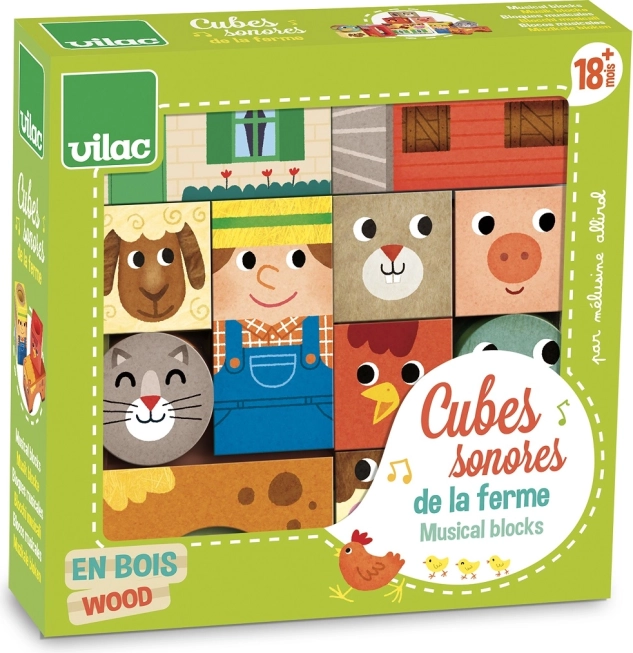 Vilac Dřevěné zvukové kostky Farma jsou zábavné a vzdělávací hračky, které pomáhají dětem rozvíjet motorické dovednosti a objevovat různé zvuky.