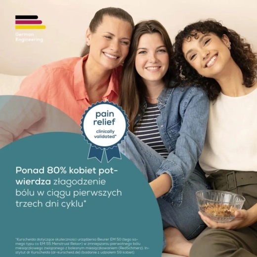 Beurer EM 55 Menstrual Relax+ je elegantní a účinný pomocník pro každodenní úlevu. Přeskožní nervová stimulace TENS tlumí přenos bolesti, zatímco větší topná plocha oproti modelu EM 50 poskytuje navíc příjemné a rychlé teplo až 43 °C. Teplotní funkci lze používat samostatně, nebo v kombinaci s TENS pro maximální komfort.