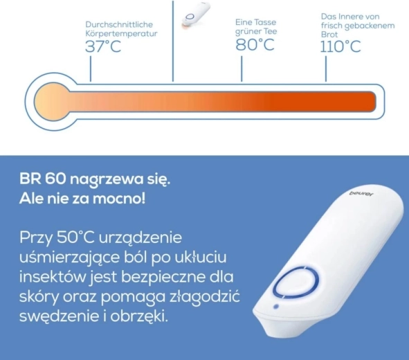 Zapomeňte na mastě a chemické přípravky – BEURER BR 60 využívá čisté teplo, které může urychlit hojení a přinést úlevu od nepříjemných projevů po bodnutí. Jednoduché ovládání a rychlý nástup účinku z něj dělají nepostradatelného pomocníka během léta i na dovolené.