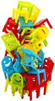 - Varianta 1: Hráči postupně skládají židličky do věže. Kdo shodí věž, prohrává.