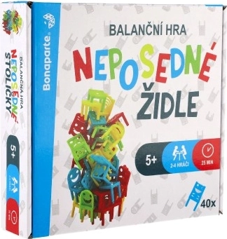 Neposedné židle jsou skvělou balanční společenskou hrou pro děti od 5 let, která nabízí různé herní varianty. Hra obsahuje 32 plastových židliček a 8 stolečků pro více herních možností. Hraní jen s jednou rukou nebo tvorba vlastních pravidel přináší další výzvy a zábavu: