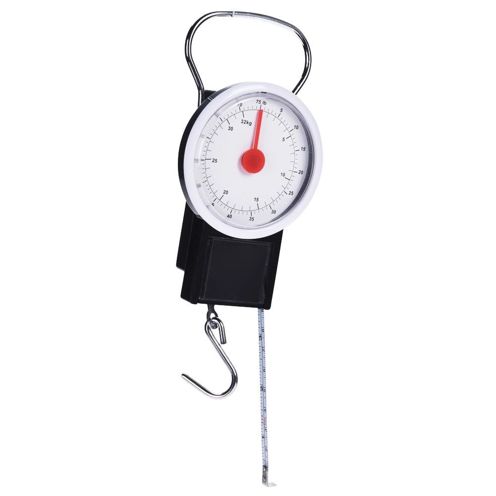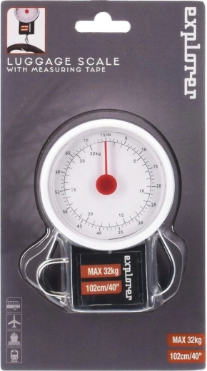 Kompaktní mechanická zavazadlová váha s háčkem a vysouvacím metrem je ideální na cesty. Umožní vám před odletem rychle zkontrolovat hmotnost kufru a vyhnout se doplatkům za nadváhu. Nabízí nosnost až 32 kg, čitelný analogový ciferník v kg i lb, skládací kovové madlo a vysouvací metr do 100 cm. Bez baterií, vždy připravená k použití.