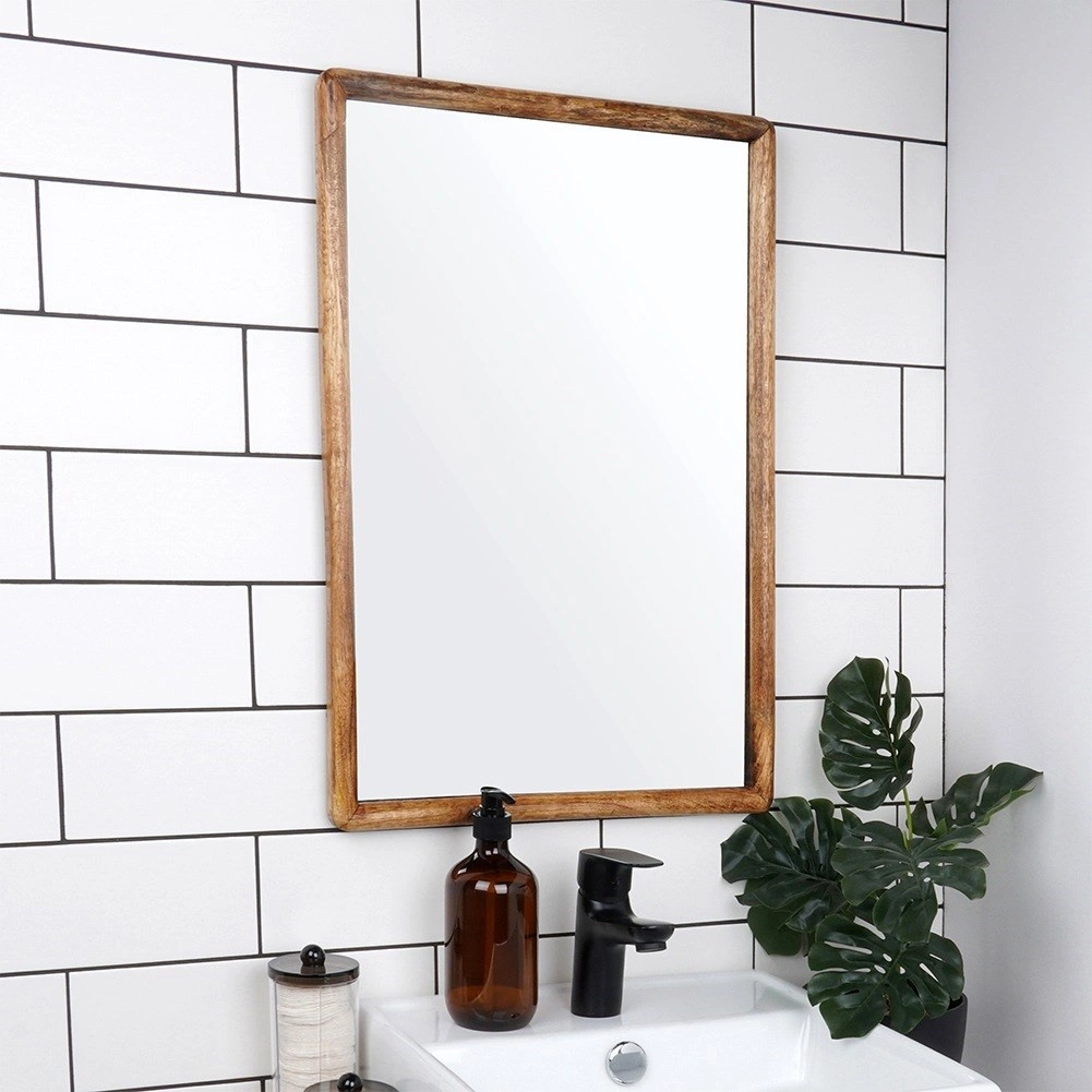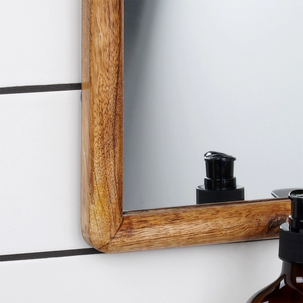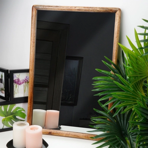 Elegantní nástěnné zrcadlo s rozměry 40 × 60 cm v přírodní dřevěné rámu z mangového dřeva dodá interiéru styl a světlo. Lze jej zavěsit vertikálně i horizontálně, perfektně se hodí do obývacího pokoje, předsíně i ložnice. Nabízí čistý a jasný odraz a stane se praktickým i designovým doplňkem každého prostoru.
