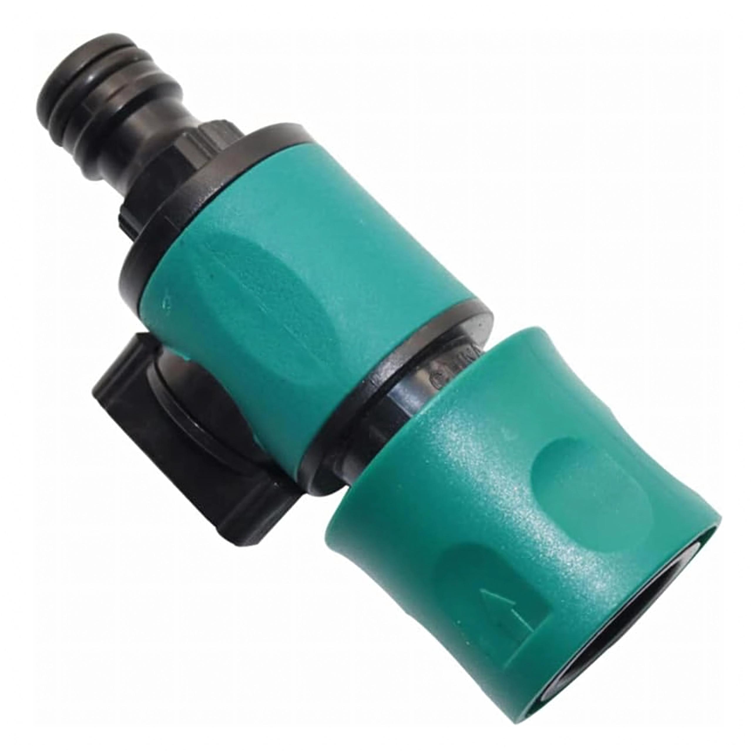 Praktická rychlospojka pro zahradní hadice s integrovaným uzavíracím ventilem umožňuje rychlé připojení a okamžité ovládání průtoku vody. Odolné plastové provedení, snadné zapojení bez nářadí a spolehlivé těsnění pro pohodlné zavlažování, mytí i údržbu zahrady.