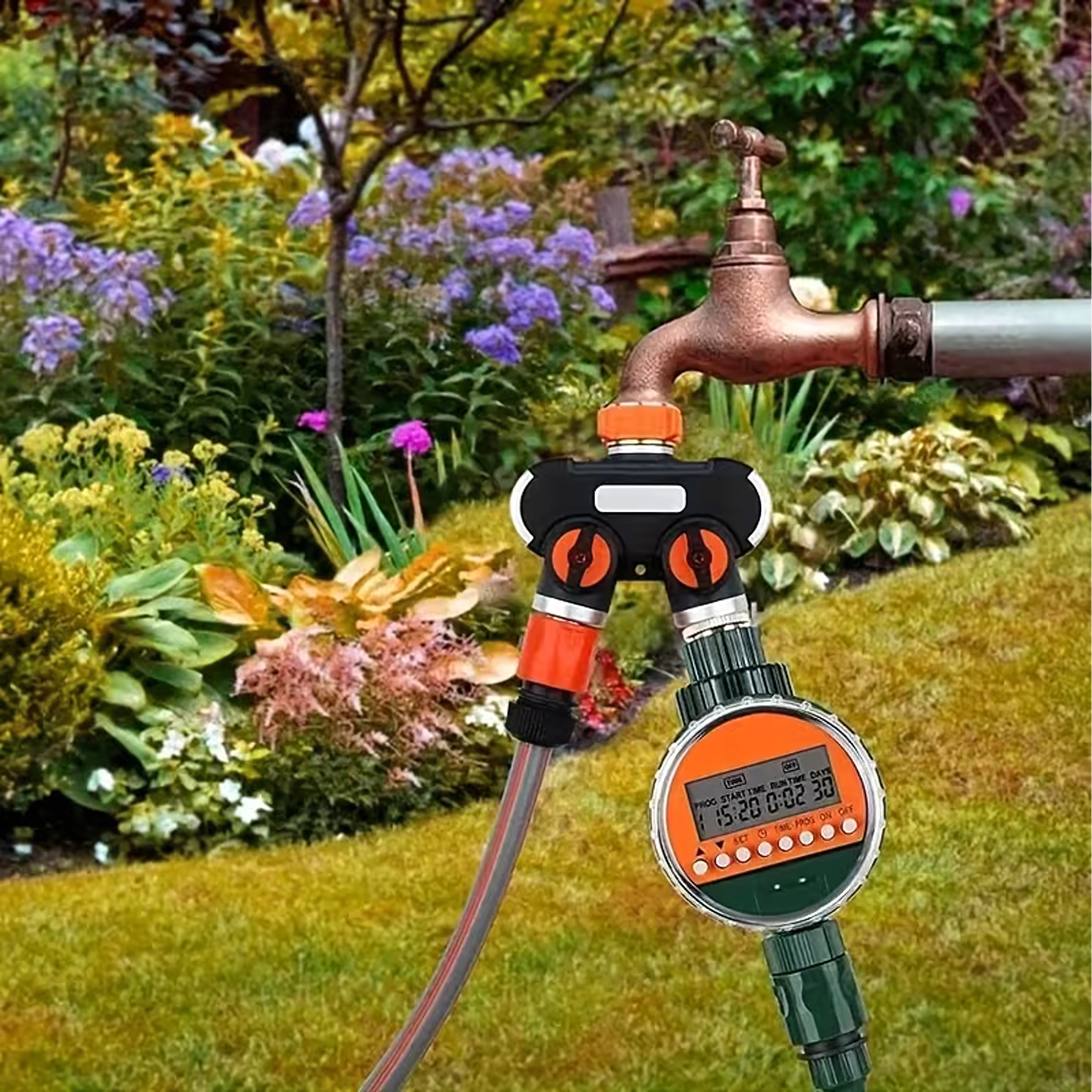 Robustní tělo s kvalitními konektory je navržené pro dlouhodobé venkovní použití. Ergonomické ovladače se dobře drží i v mokru a usnadňují rychlou změnu nastavení. Skvělé řešení pro zahrady, skleníky i dvory, kde potřebujete obsloužit dvě zóny najednou.