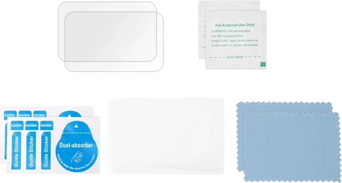 - 2× tvrzené sklo, 2× sada samolepek pro odstranění prachu, 2× čisticí hadřík, 2× čisticí sáček, úložný box