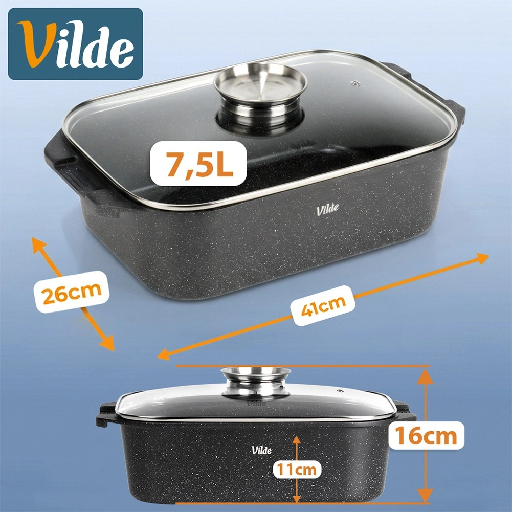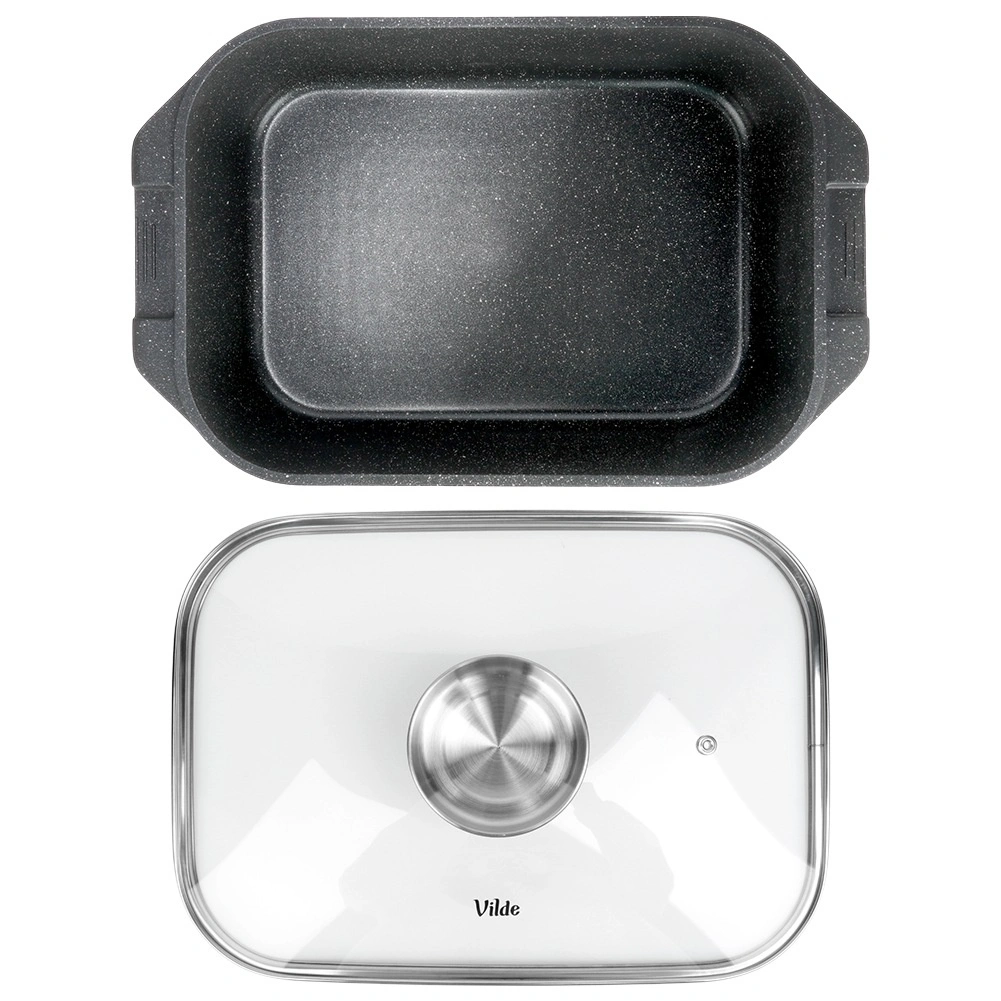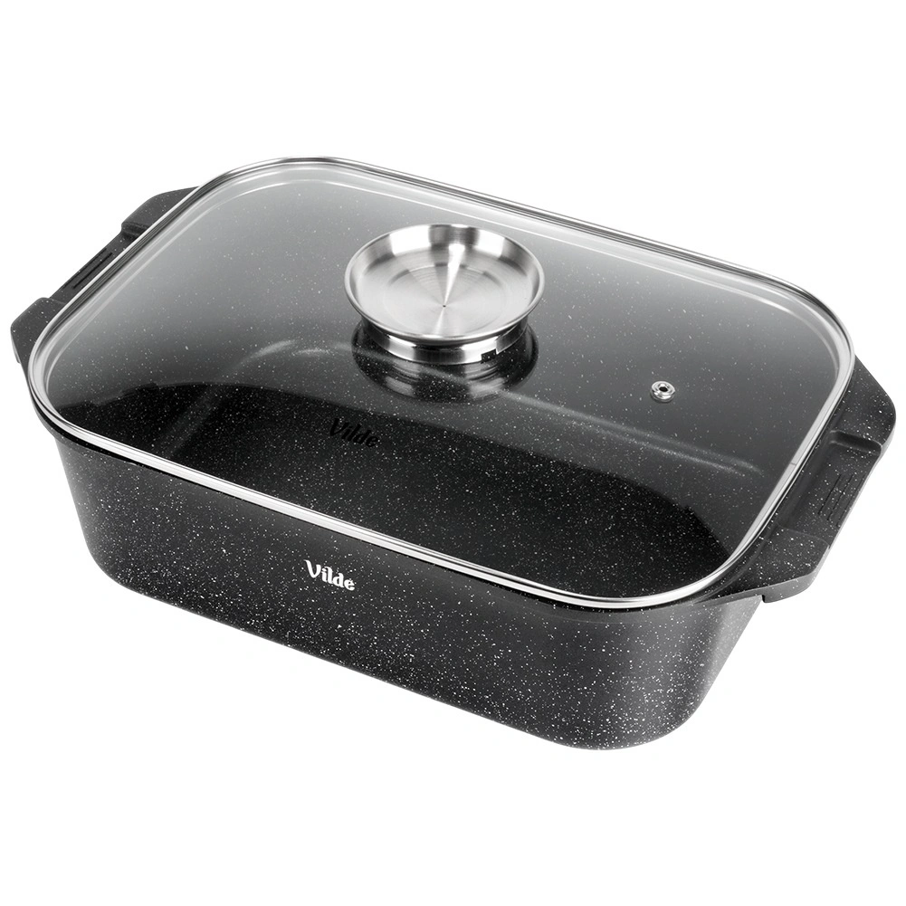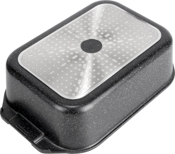 Univerzální pekáč s rozměry 41 × 26 × 16 cm (výška nádoby bez poklice 11 cm) je spolehlivým pomocníkem pro každodenní vaření. Robustní odlitek hliníku s nepřilnavou granitovou vrstvou zajišťuje rovnoměrnou distribuci tepla a snadné uvolnění pokrmů. Skleněná poklice je žáruvzdorná a umožňuje pohodlnou kontrolu přípravy.