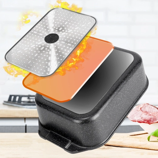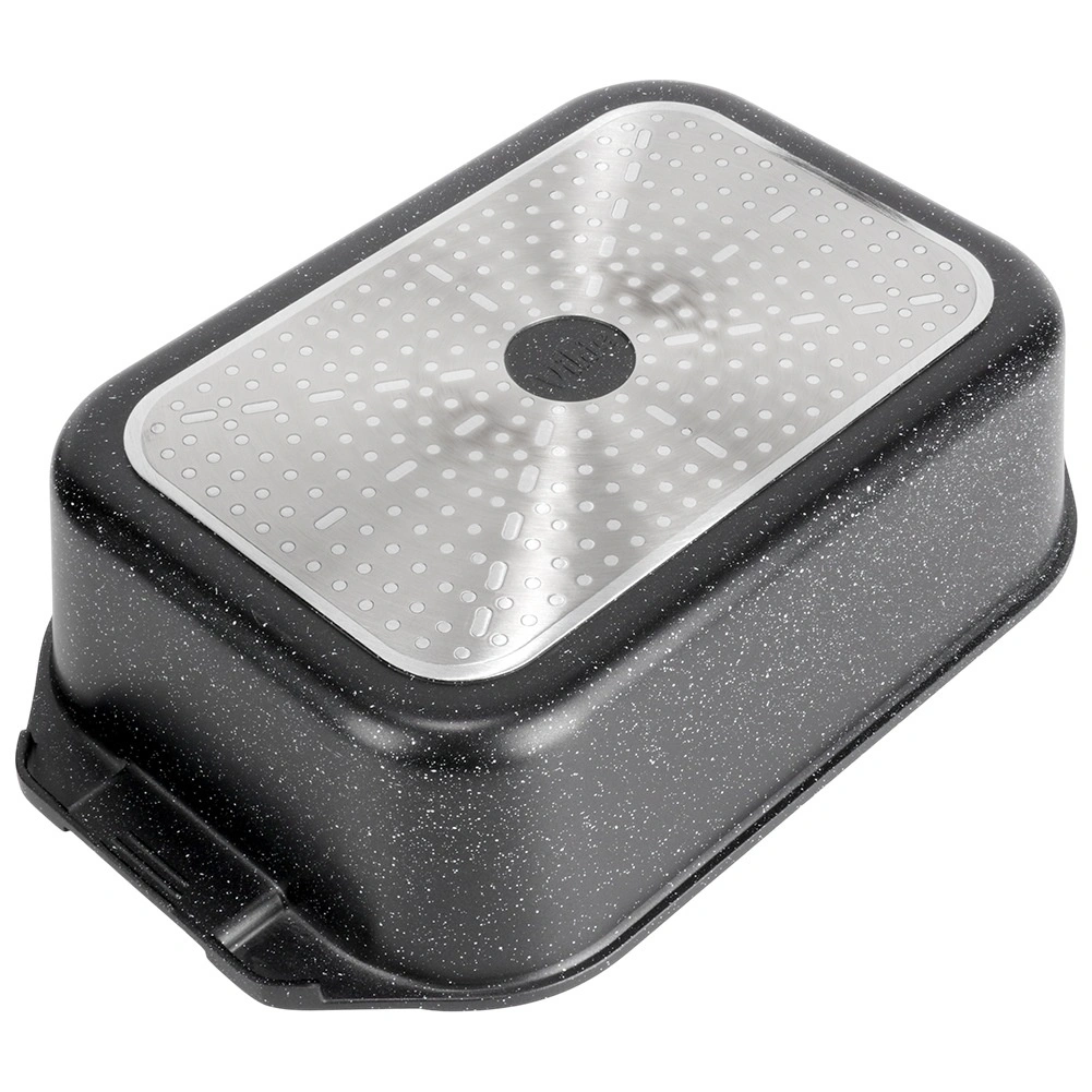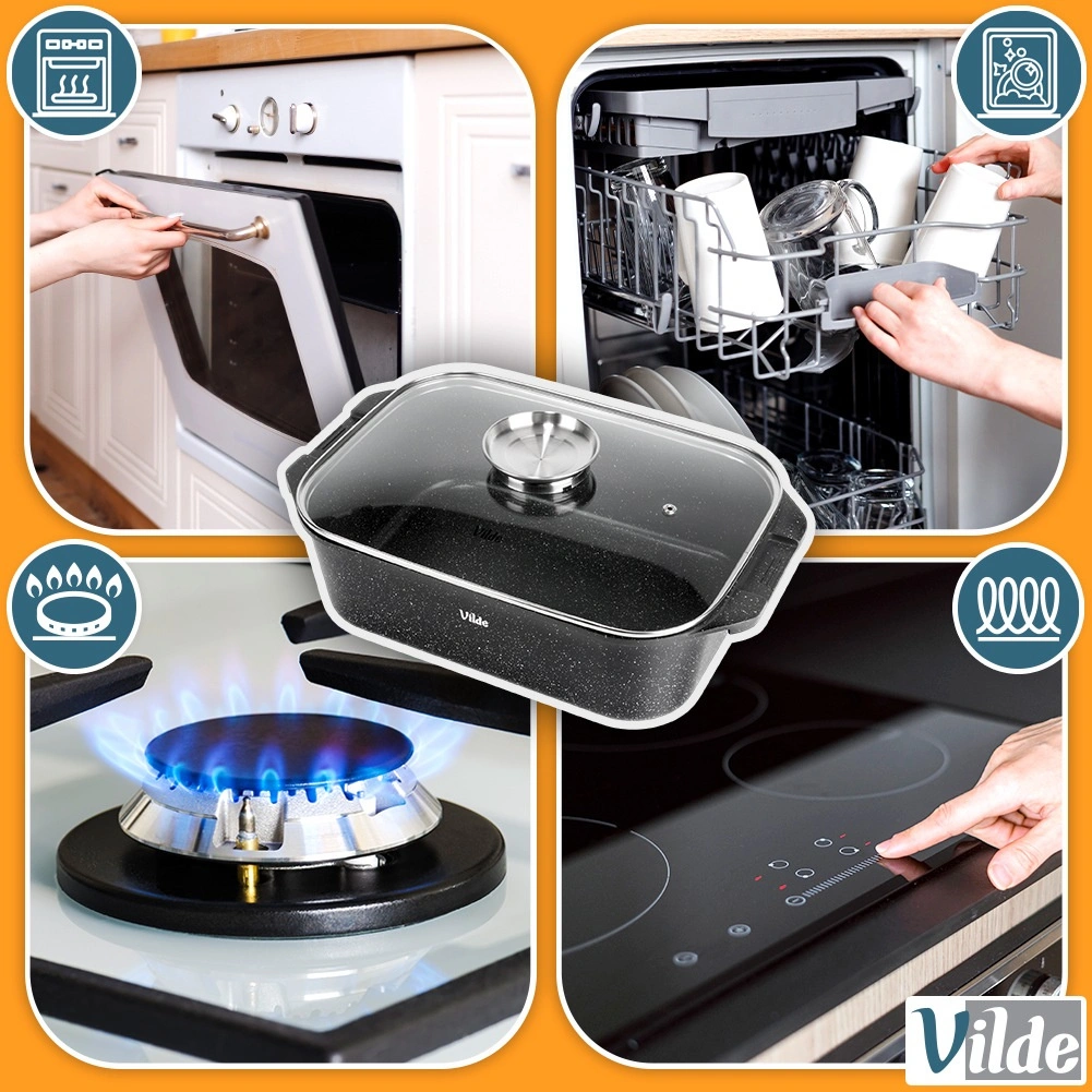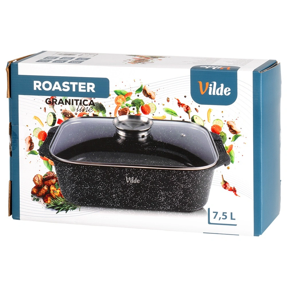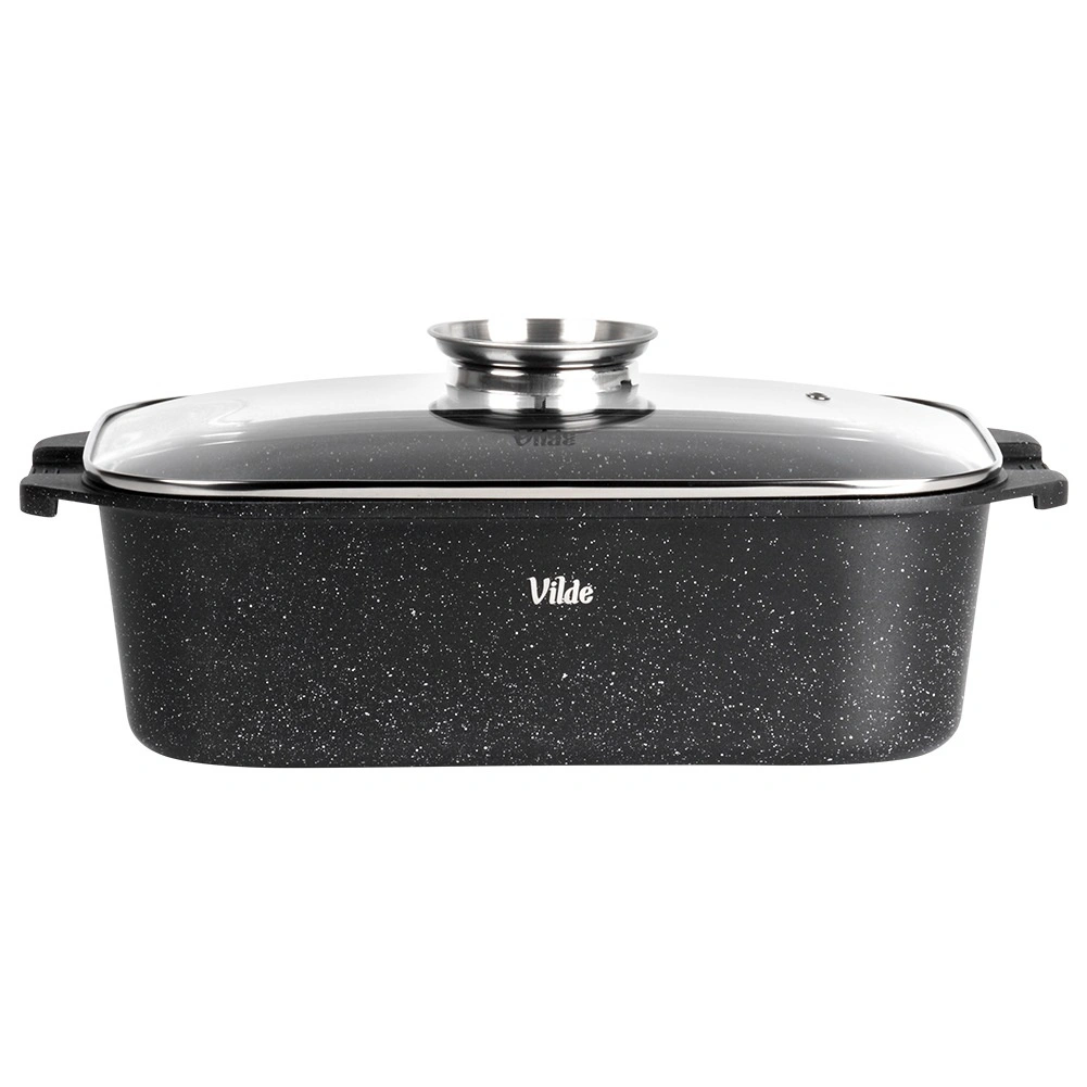 Univerzální pekáč s rozměry 41 × 26 × 16 cm (výška nádoby bez poklice 11 cm) je spolehlivým pomocníkem pro každodenní vaření. Robustní odlitek hliníku s nepřilnavou granitovou vrstvou zajišťuje rovnoměrnou distribuci tepla a snadné uvolnění pokrmů. Skleněná poklice je žáruvzdorná a umožňuje pohodlnou kontrolu přípravy.