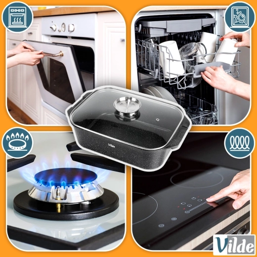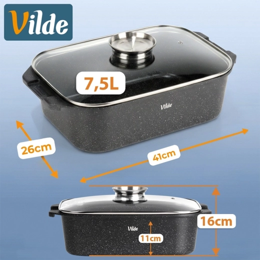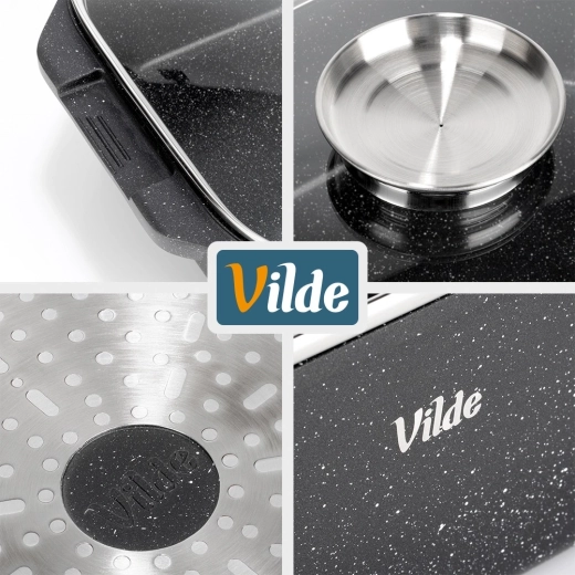 Snadná údržba a dlouhá životnost: kvalitní povrch snižuje připékání a celý set lze mýt v myčce nádobí. Originální produkt značky VILDE z linie GRANITICA LINE vyrobený dle evropských standardů.