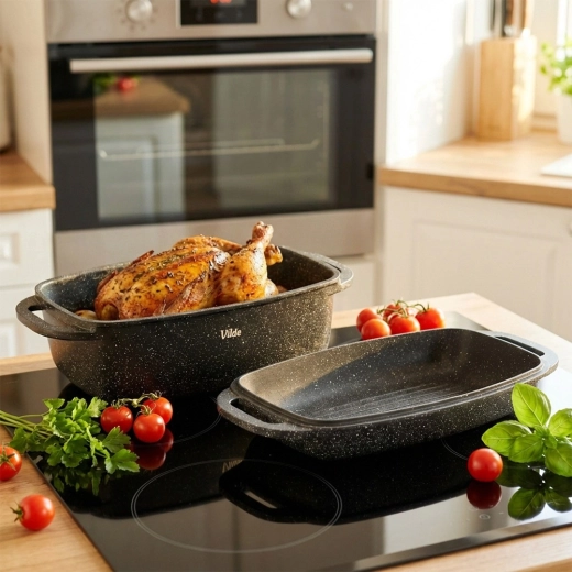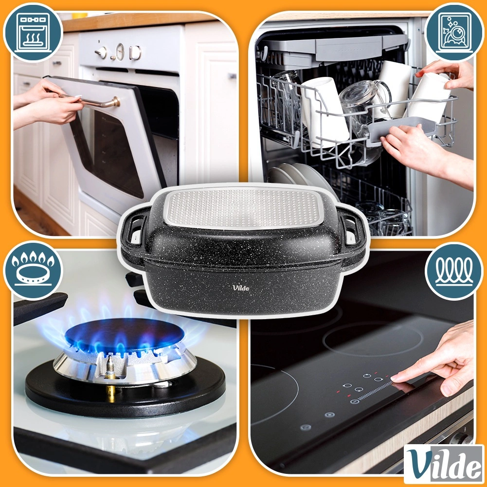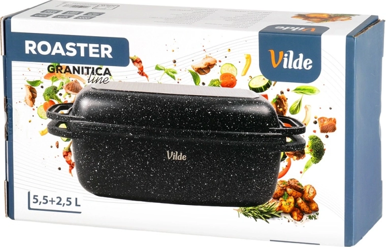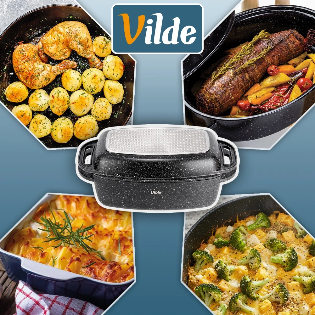 Všestranné použití: trouba až do 250 °C, sporák plynový, elektrický, sklokeramický i indukční. Po vaření jednoduše vložte do myčky nádobí. Originální výrobek VILDE – Granitica Line, vyrobeno dle evropských standardů.