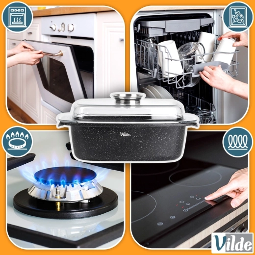 Díky skvělé distribuci a akumulaci tepla dosáhnete rovnoměrného propečení. Pekáč je vhodný do trouby až do 250 °C (se skleněným víkem do 220 °C) a funguje na plynových, elektrických, sklokeramických i indukčních varných deskách. Po použití jej snadno umyjete, včetně víka, také v myčce nádobí.