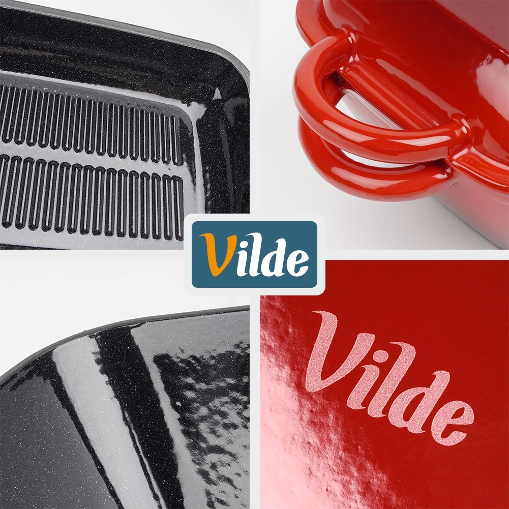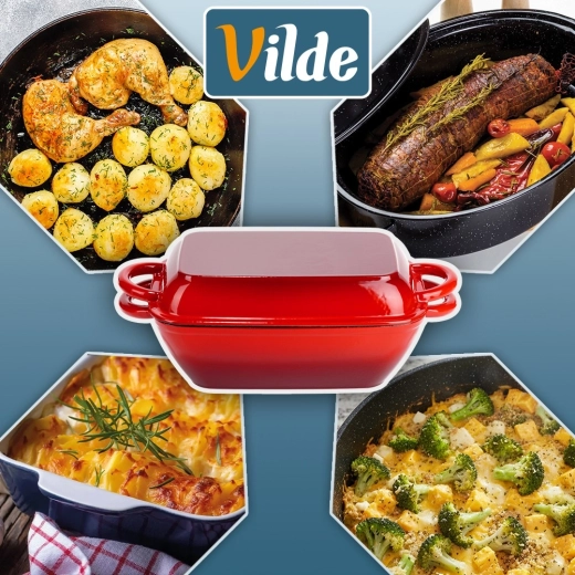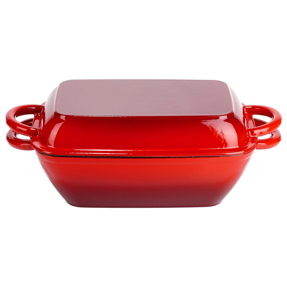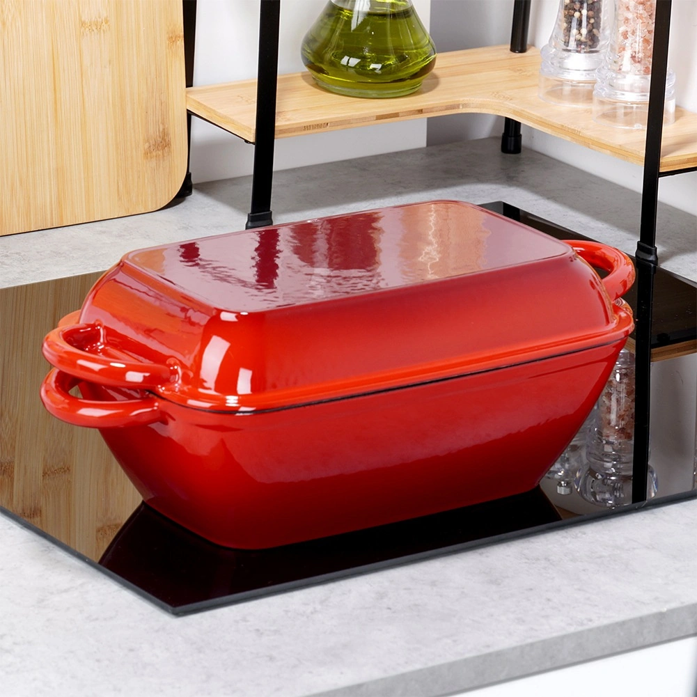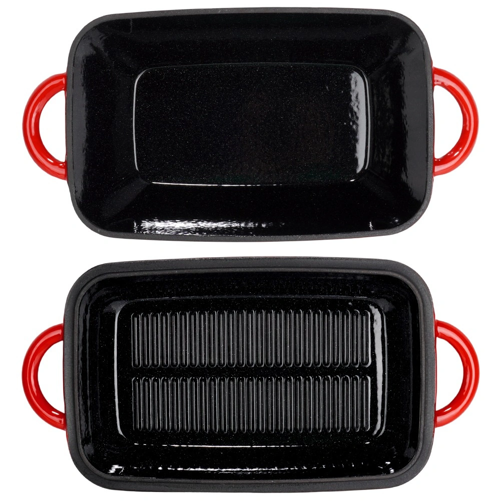 Univerzální litinová pekáčová sada 2v1 pro pečení, dušení i zapékání. Víko slouží jako samostatná grilovací pánev s rýhovaným dnem, samotný pekáč nabízí rovnoměrné vedení tepla a dlouhé udržení teploty. Odolné smaltované provedení, pohodlné boční úchyty a použití na všech typech sporáků včetně indukce i v troubě.