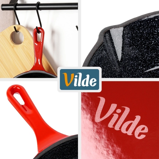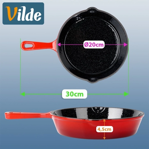 Univerzální využití v kuchyni, na grilu i nad otevřeným ohněm dělá z této pánve skvělého parťáka doma i na cestách. Pevné provedení a nadčasový design v červené barvě podtrhuje kvalitu značky VILDE z linie CAST ENAMEL.
