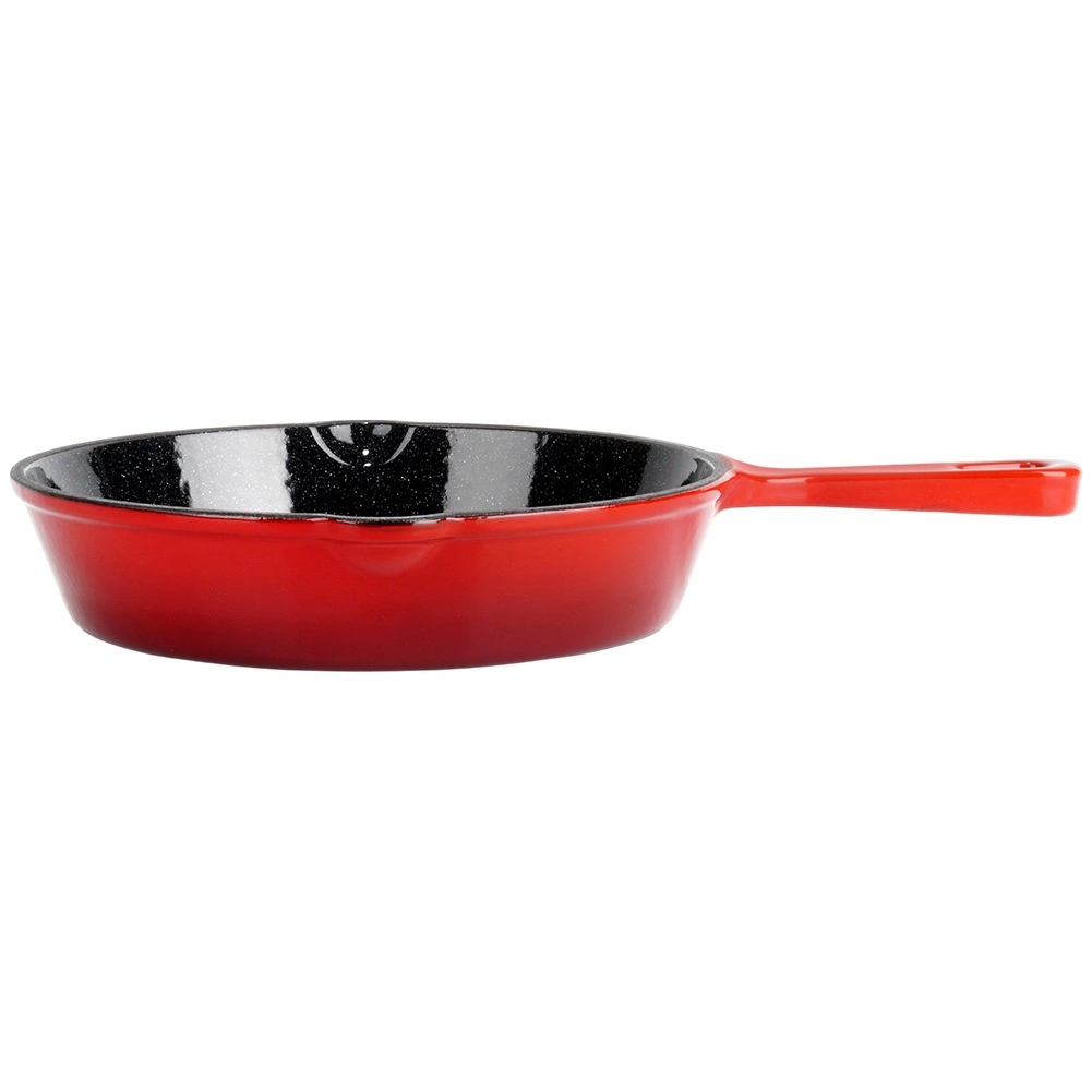 Univerzální litinová pánev o průměru 20 cm s černým smaltovaným povrchem uvnitř a červeným emailem zvenku nabídne rychlé a rovnoměrné zahřívání, dlouhé udržení tepla a dvě praktické výlevky pro snadné slévání. Součástí je silikonový návlek na rukojeť pro bezpečnou manipulaci. Vhodná na plyn, elektřinu, keramiku i indukci a do trouby.