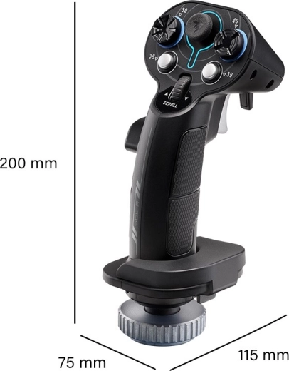 - Mini-stick, 2 spouště (1 dvoupolohová) a scroll kolečko pro dynamické ovládání.