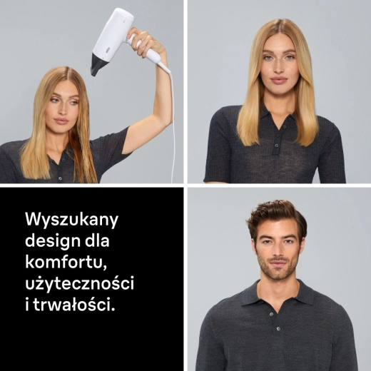 Součástí je také praktický difuzér pro nadýchaný objem a definované vlny. Ergonomická, protiskluzová rukojeť a intuitivní ovládací prvky zpříjemní používání, zatímco funkce studeného vzduchu účes zafixuje a dodá mu lesk.