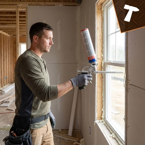 Úzká tryska pomáhá aplikovat pěnu přesně do spár kolem okenních rámů a dalších detailů.