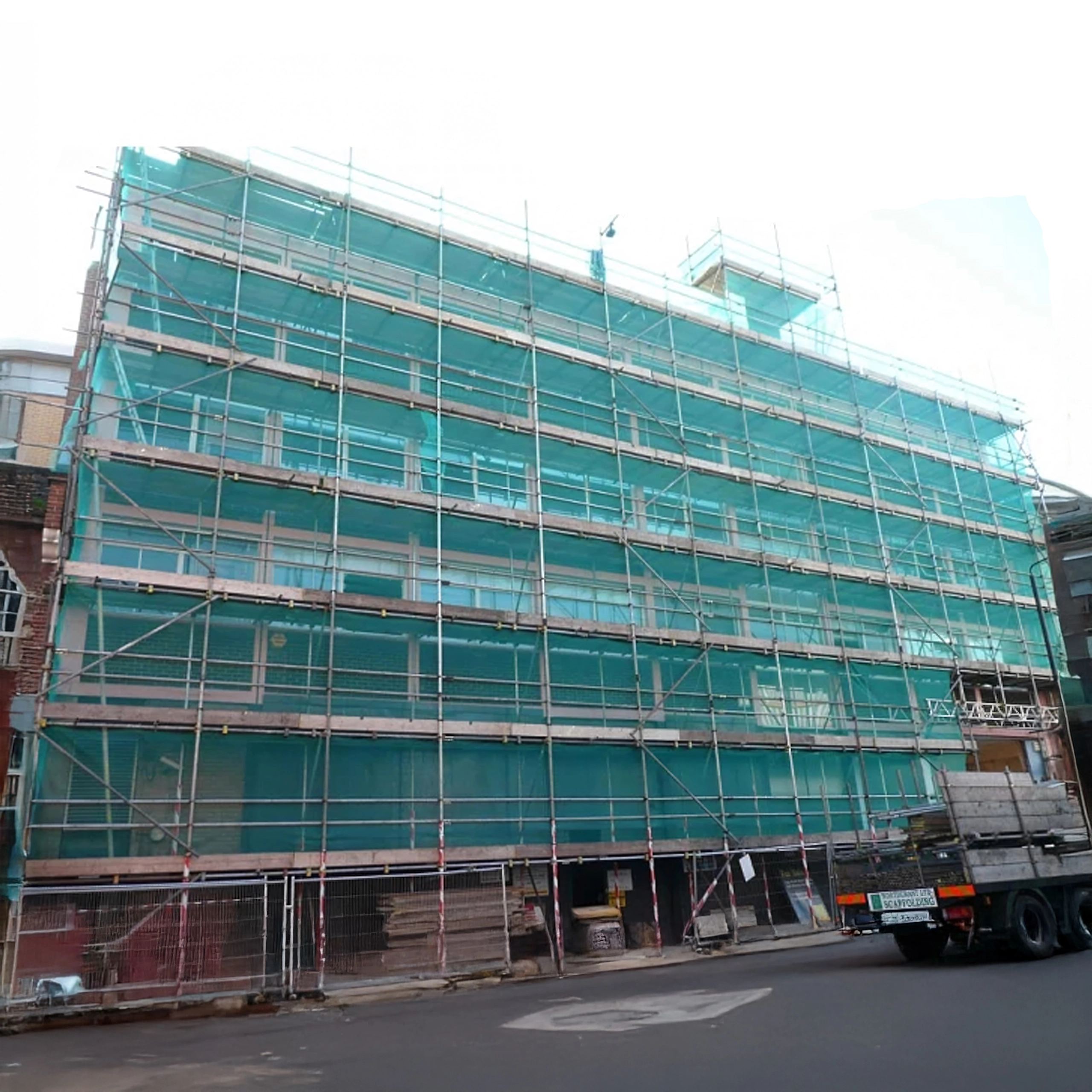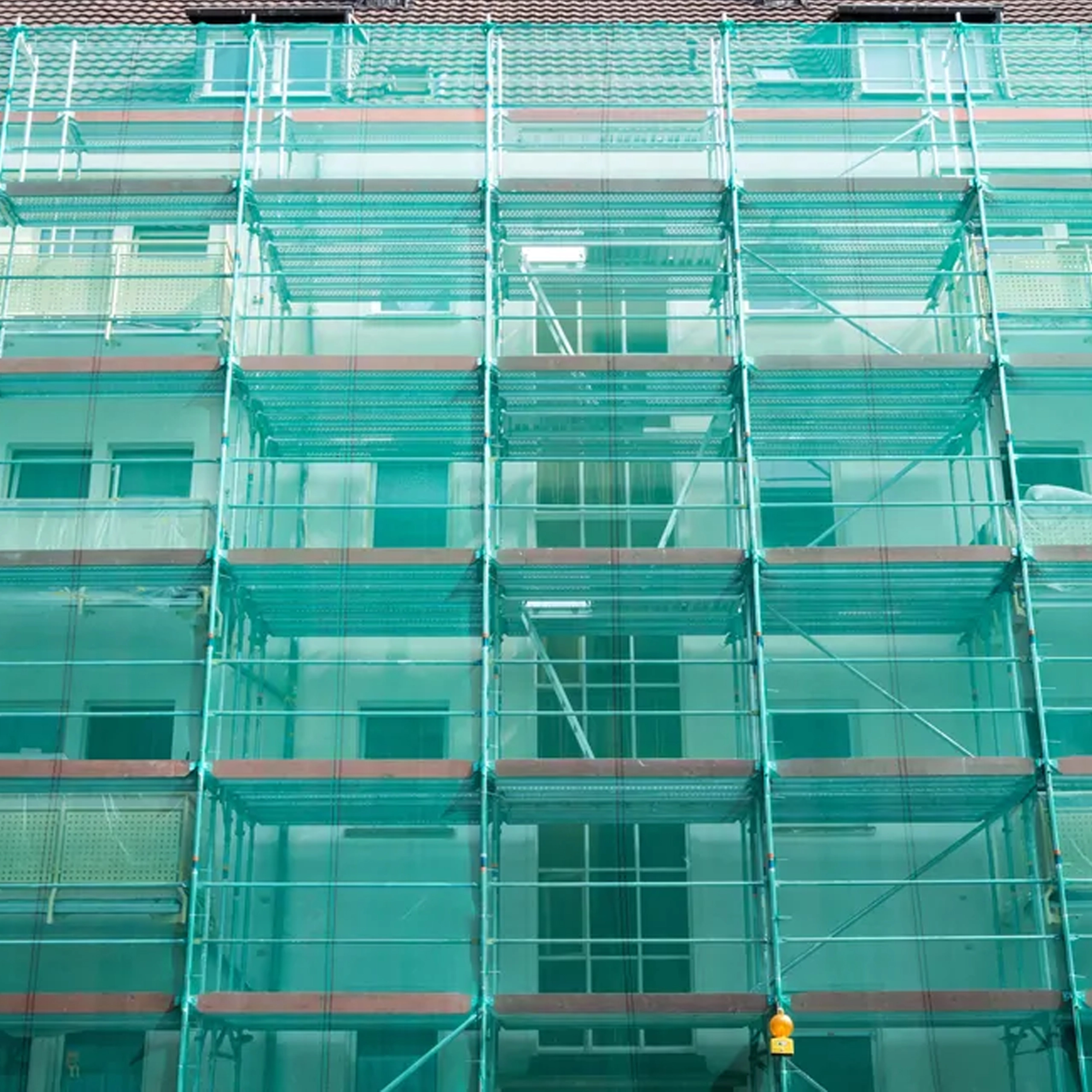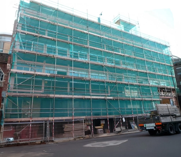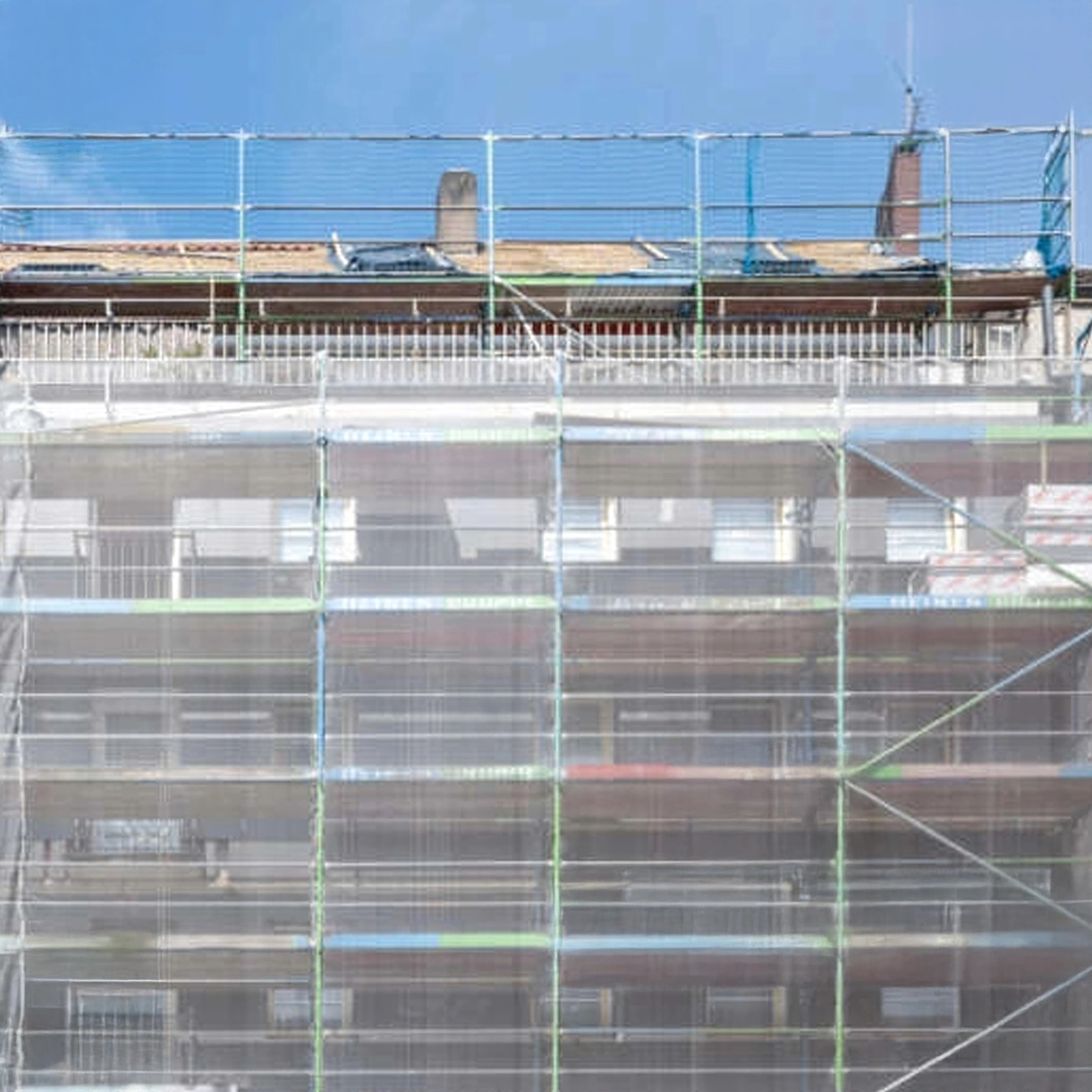 Síť tvoří účinnou bariéru proti prachu a drobným úlomkům, čímž zvyšuje bezpečnost pracovníků i chodců v okolí staveniště.