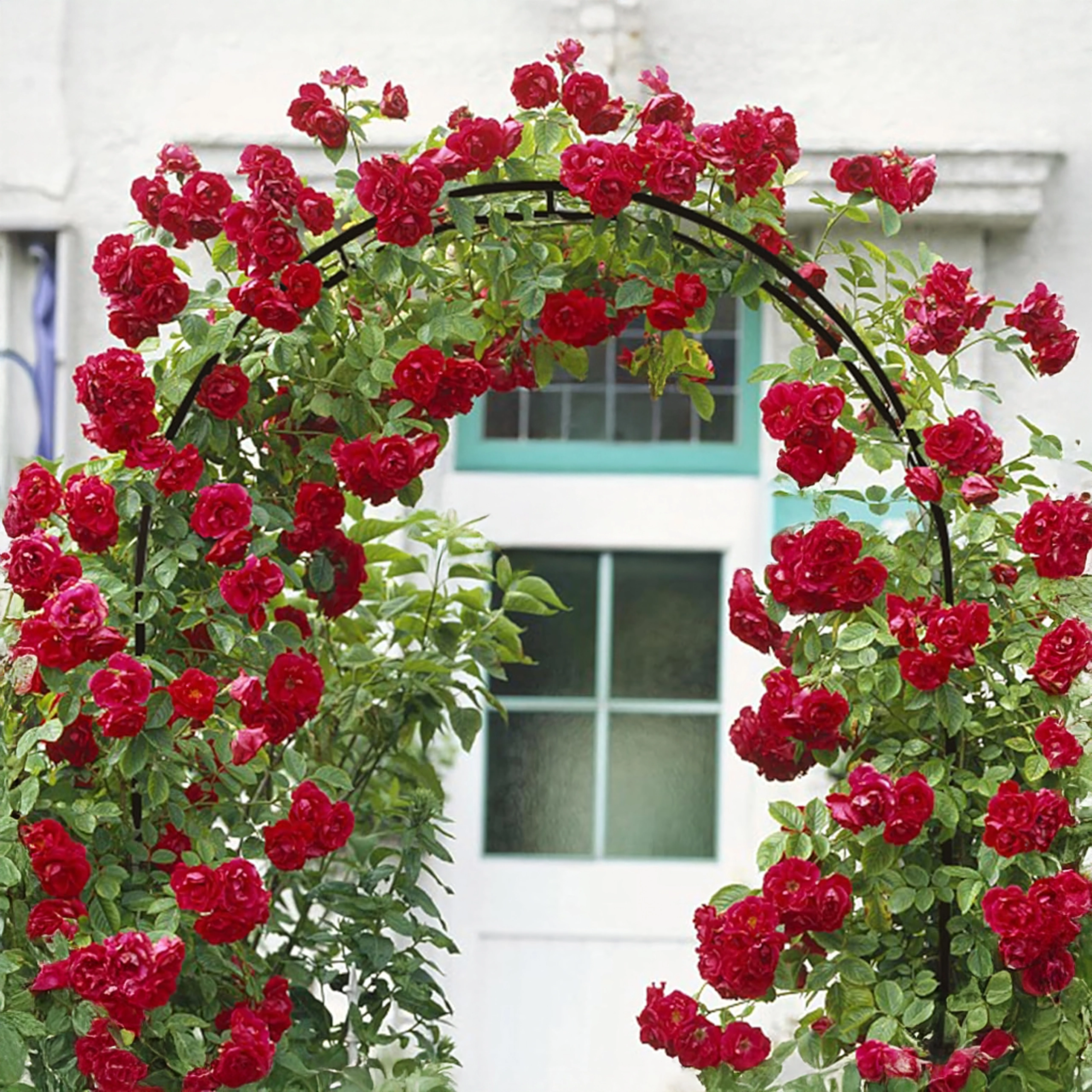 Stabilní rám bezpečně nese růže, révu i okrasné liány a vytváří výrazný zahradní prvek.