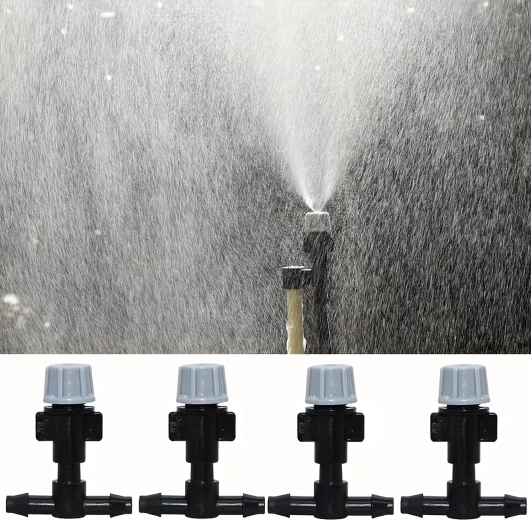 Trysky vytvářejí rovnoměrnou mlhu, která nezatěžuje listy a udržuje optimální mikroklima pro rostliny. Ideální pro skleníky, záhony i terasy.