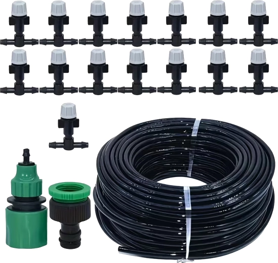 Tato zahradní mlžící a zavlažovací sada je ideální pro ochlazování terasy i pravidelnou závlahu rostlin. Jemné rozprašování vytváří chladivý film, snižuje prašnost a zároveň dodává vláhu bez přemokření. Díky 15 tryskám a 15 m flexibilní hadice snadno pokryjete dlouhé okraje záhonů, skleníky i řady květináčů.