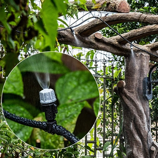 Mlžící trysky vytvářejí velmi jemný rozptyl, který efektivně zvlhčuje listy a okolní vzduch bez odtékání vody. Ideální pro horké dny i citlivé rostliny.