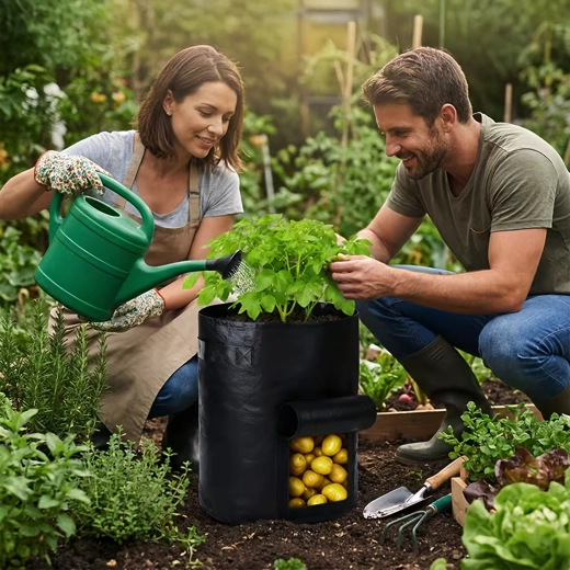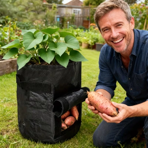 Robustní, prodyšná netkaná textilie podporuje cirkulaci vzduchu, brání přemokření a přehřívání kořenů. Praktické přenášecí úchyty zjednodušují manipulaci na zahradě, balkoně i ve skleníku. Vak jednoduše složíte a mimo sezónu nezabírá místo.