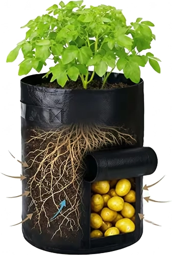 Maximalizujte úrodu i v malém prostoru. Tento pěstební vak je ideální pro brambory, mrkev, ředkvičky, cibuli či bylinky. Boční okénko na suchý zip usnadňuje průběžnou kontrolu i sklizeň – bez nutnosti přesypávat substrát.