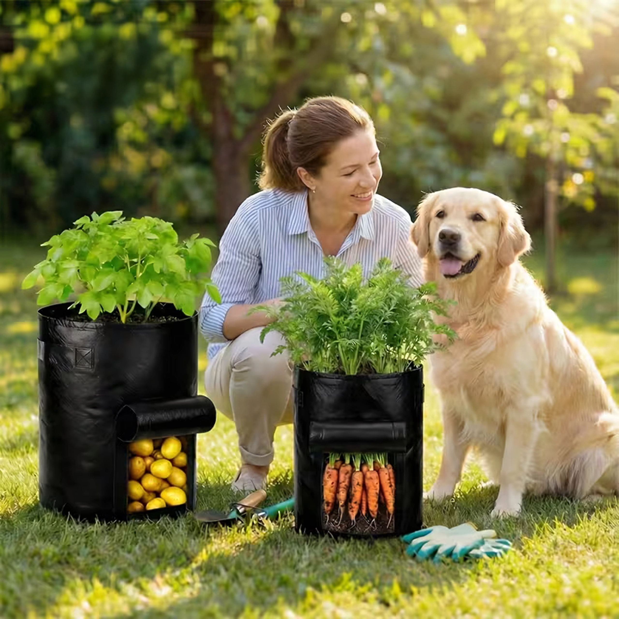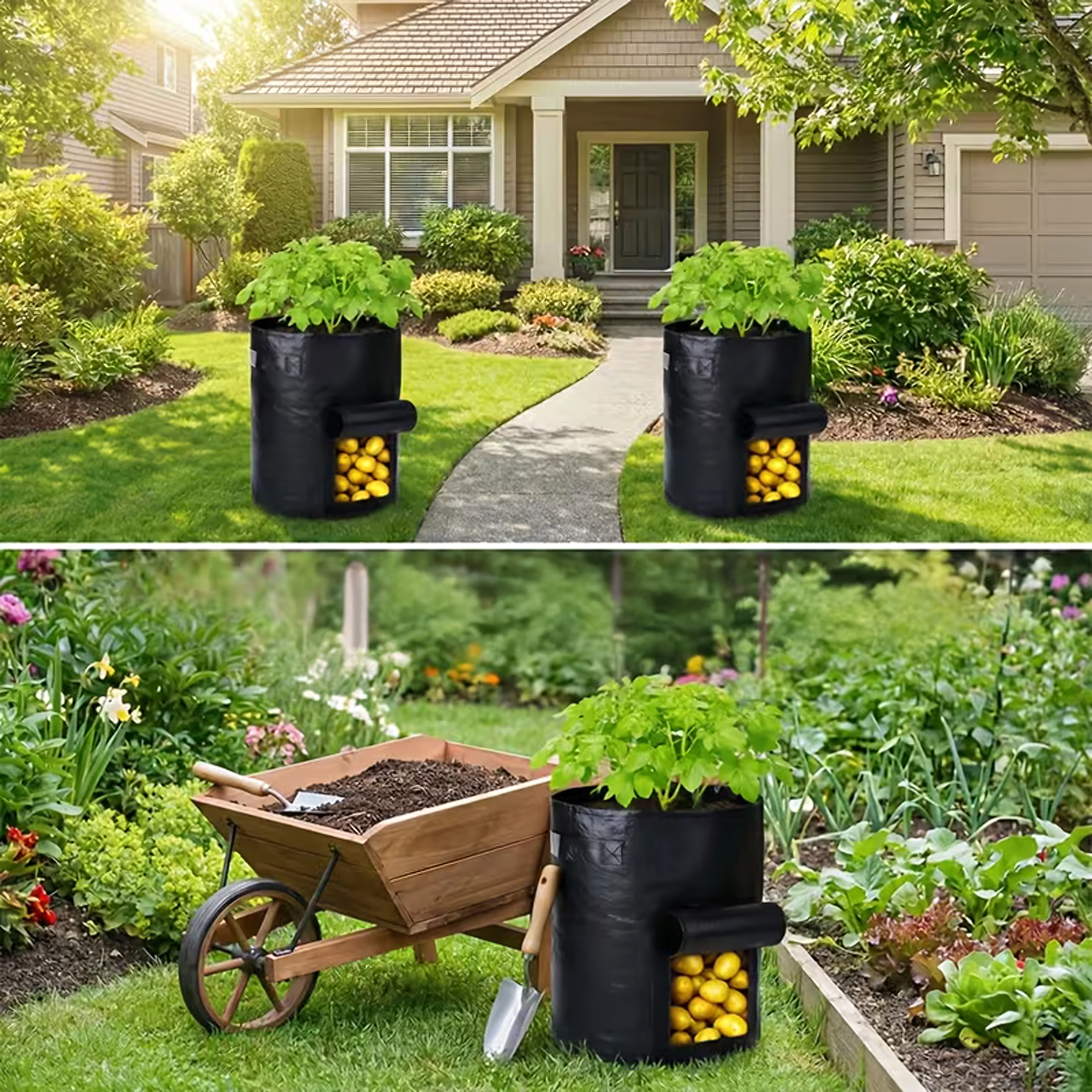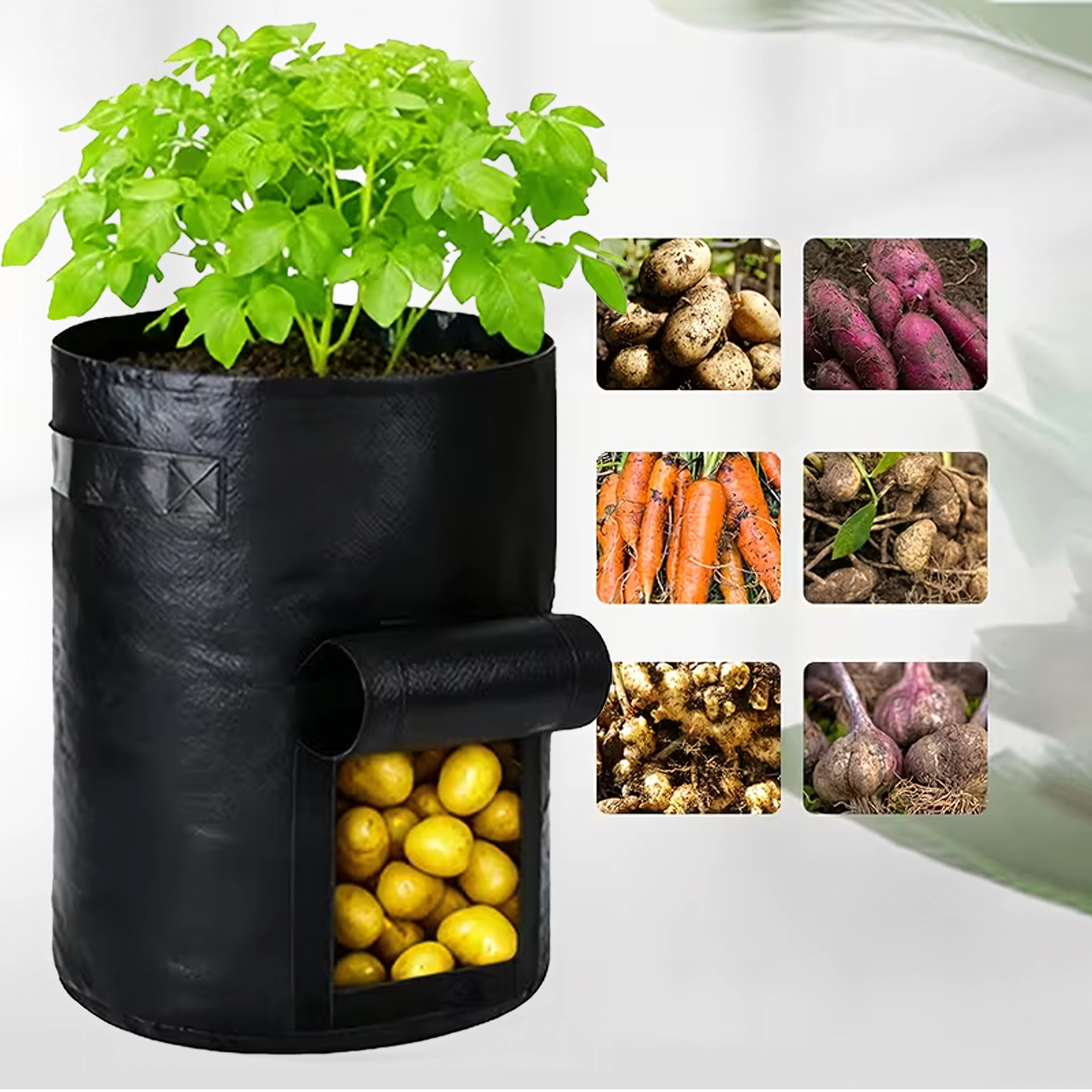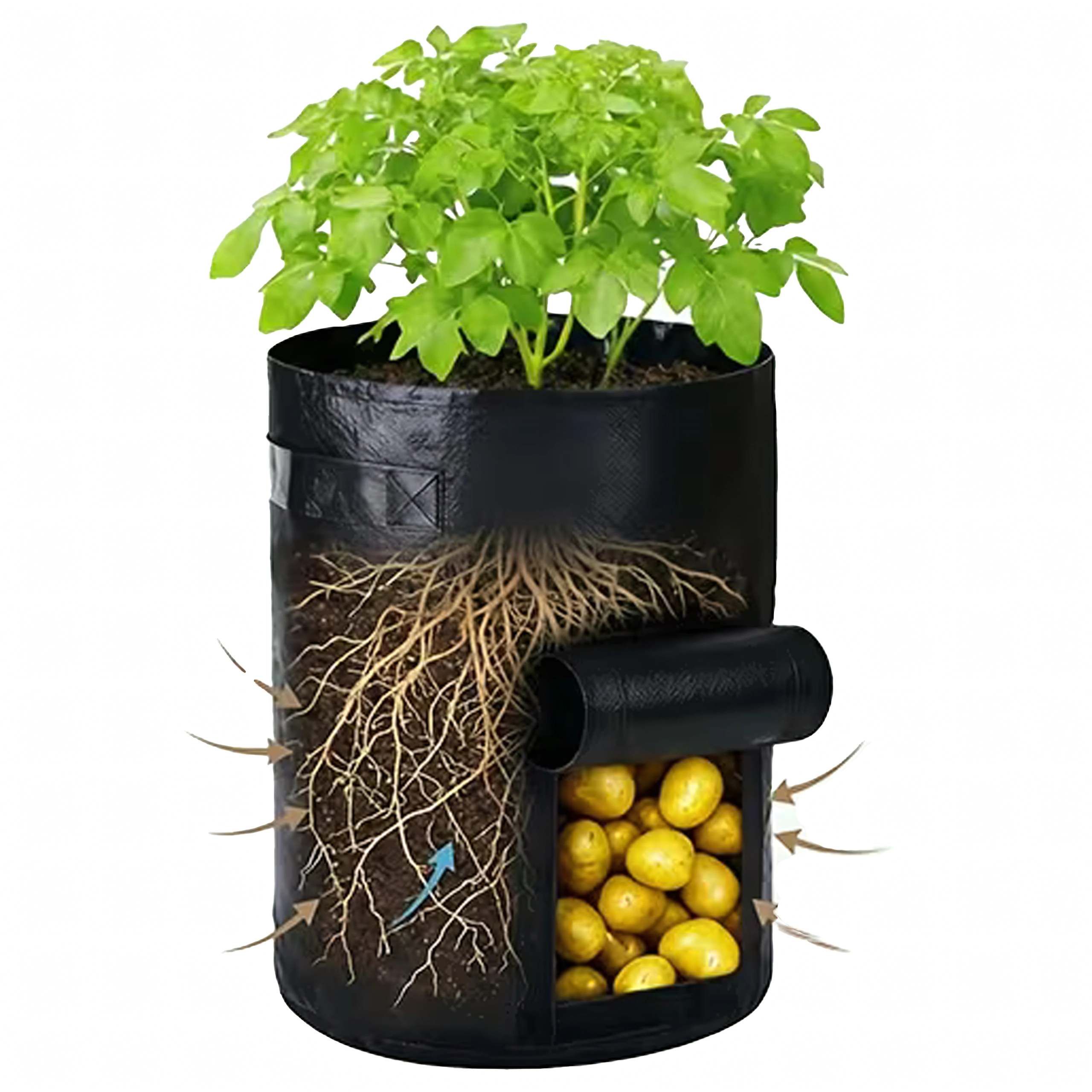 Sklízejte brambory a další kořenovky rychle a bez nepořádku. Okénko na suchý zip umožní nahlédnout dovnitř a vyjmout jen zralé kusy.