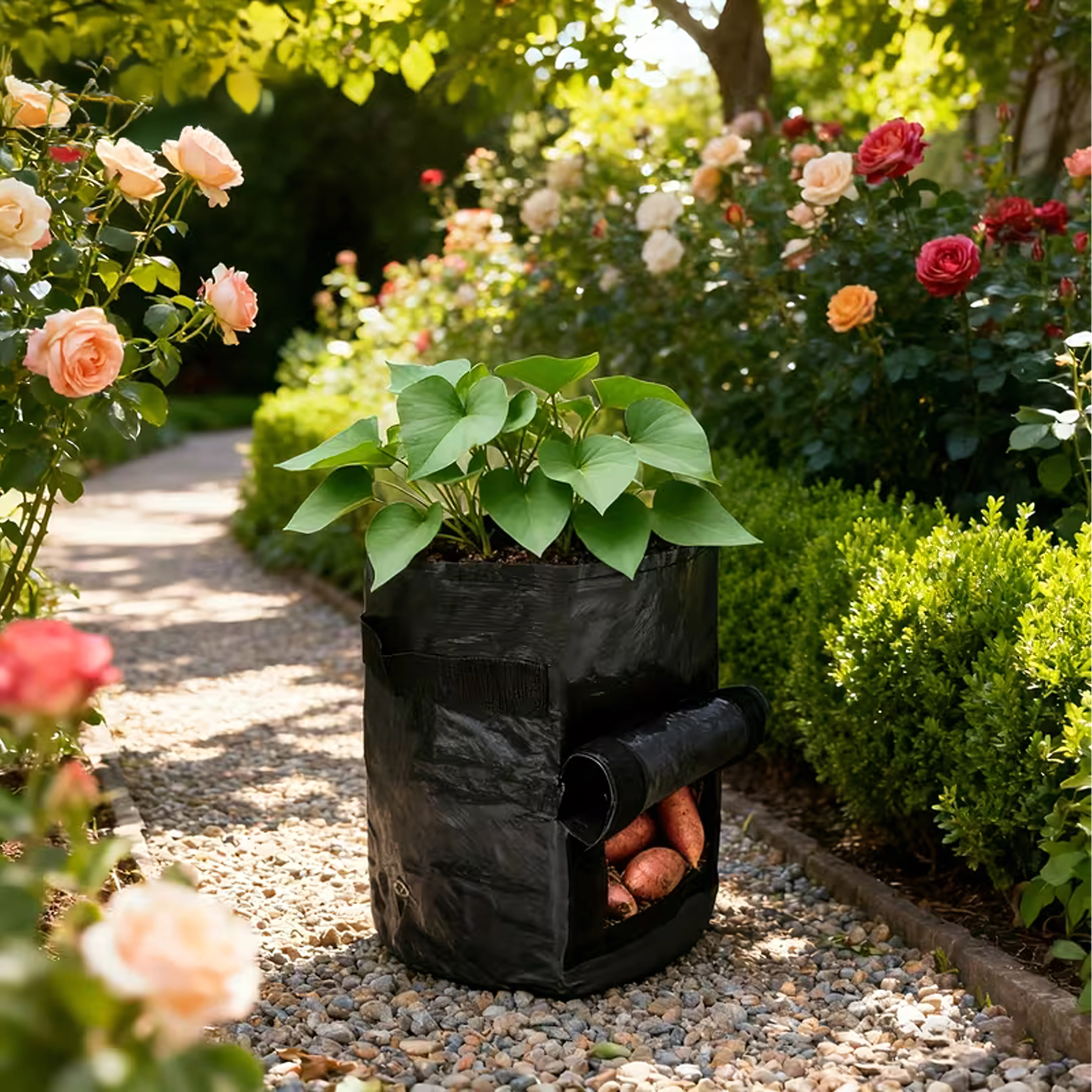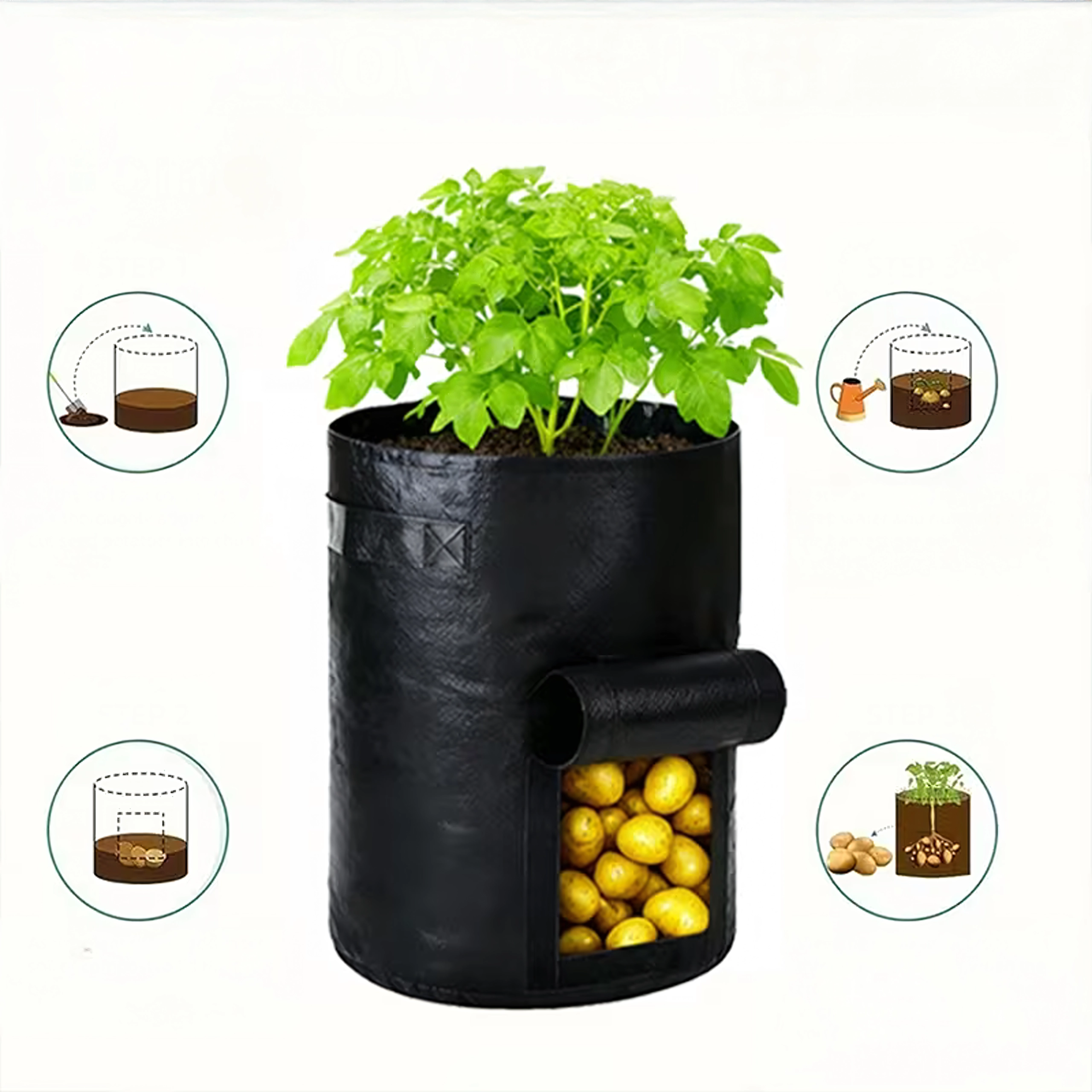 Praktický pěstební vak s okénkem umožňuje snadné pěstování a sklizeň brambor i další kořenové zeleniny na zahradě, balkonu či terase. Díky bočnímu sklizňovému okénku rychle zkontrolujete růst a vyjmete úrodu bez vyhrabávání. Odolná textilie s úchyty pro přenášení a prodyšnou konstrukcí podporuje zdravý růst kořenů a efektivní odvodnění.