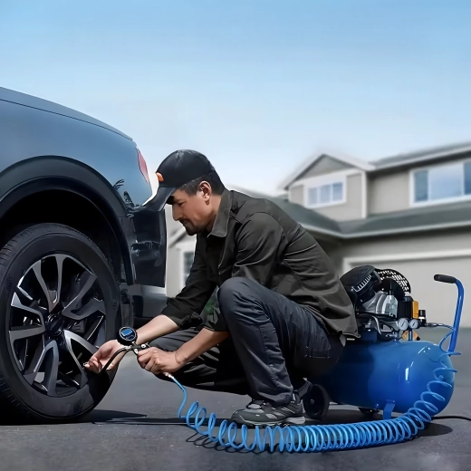 Pistolová spoušť umožňuje intuitivní regulaci průtoku vzduchu. Snadno dofouknete pneumatiky auta, motorky i kola.