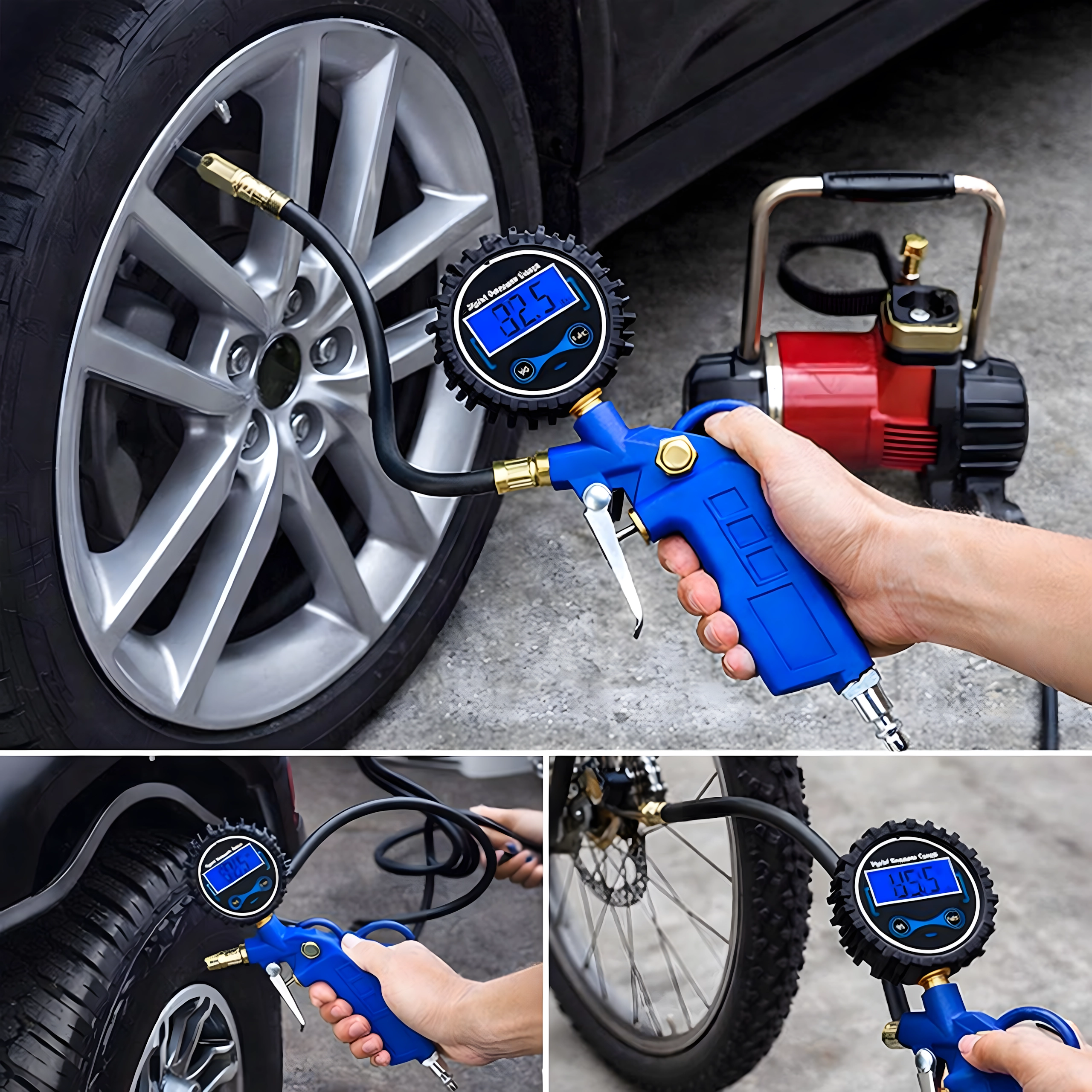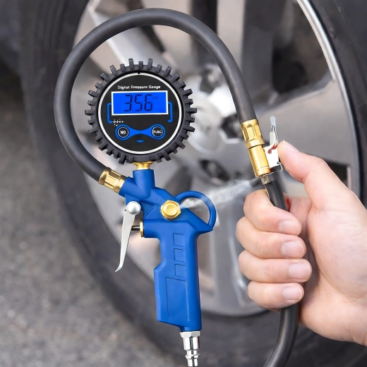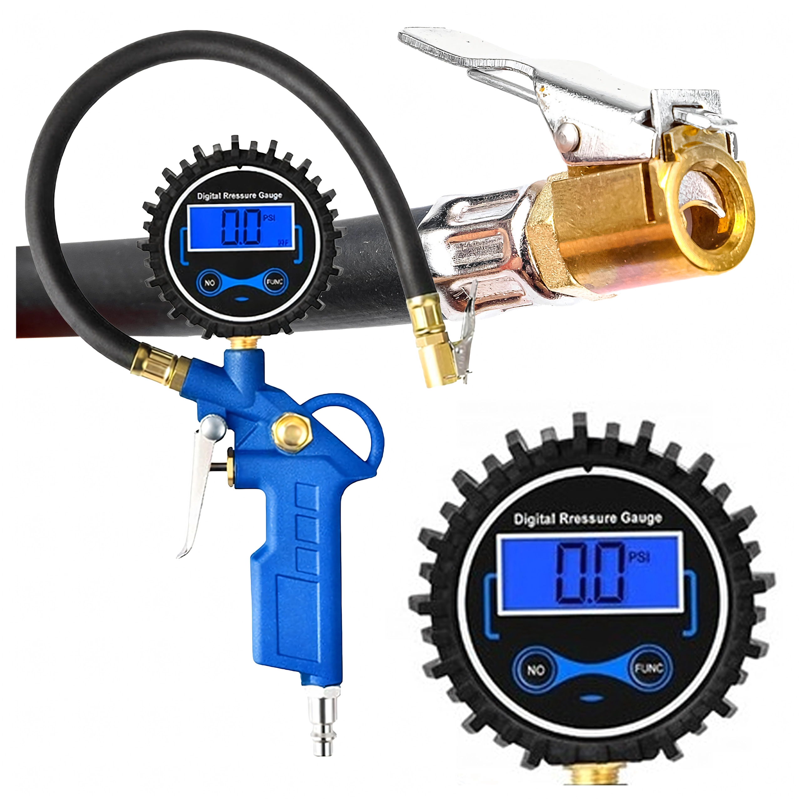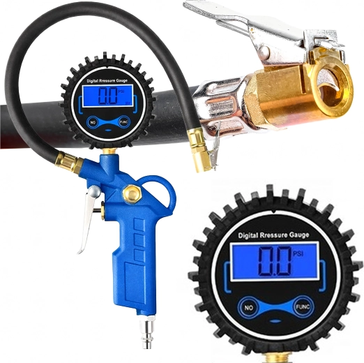 Praktická digitální pistole na huštění pneumatik s přesným elektronickým manometrem až do 14 bar. Umožňuje rychlé měření tlaku a pohodlné dofukování stiskem spouště. Díky podsvícenému displeji a klipsnové koncovce je ideální pro auto, moto i kolo doma i v dílně.