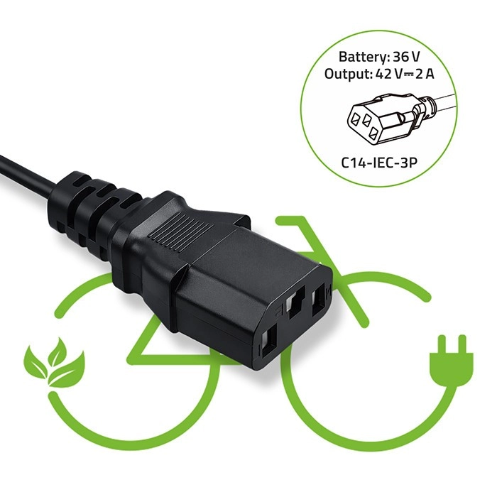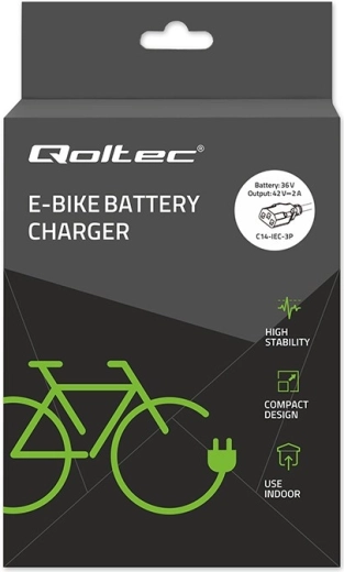 Kompaktní nabíječka Qoltec pro elektrokola poskytuje výstup 42 V / 2 A (84 W) pro akumulátory 36 V Li‑ion. Díky konektoru C14 IEC 3pin a napájení ze standardní zásuvky 230 V je ideální pro domácí i cestovní použití. Nabíječka nabízí vysokou bezpečnost, spolehlivost a účinné chlazení, má LED indikaci nabíjení a odolnost IP54 vůči prachu a stříkající vodě.