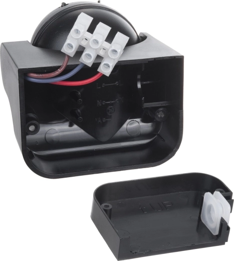 Senzor snímá pohyb v úhlu 180° a až do vzdálenosti 12 metrů, takže spolehlivě pokryje vchody, chodby a nájezdové zóny.