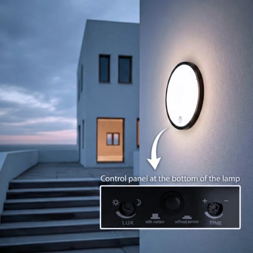Odolné krytí IP65 zajišťuje bezproblémové použití venku – u vchodů, na terasách či podél cest – i uvnitř budov v chodbách, garážích nebo technických místnostech. V případě potřeby lze senzor deaktivovat a využít nepřetržitý režim svícení, čímž svítidlo poslouží jako klasický zdroj světla.