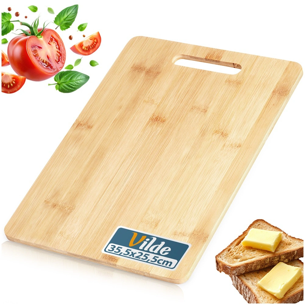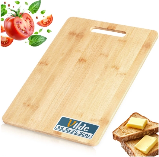 Praktické bambusové prkénko o rozměrech 35,5 × 25,5 cm a tloušťce 1 cm je ideální pro každodenní krájení i stylové servírování. Díky přírodnímu materiálu je odolné vůči vlhkosti, rychle schne a je šetrné k nožům. Integrovaný ergonomický úchyt usnadňuje přenášení a zavěšení, zatímco hladký povrch s jemnou kresbou dřeva dodá vaší kuchyni přirozený vzhled.