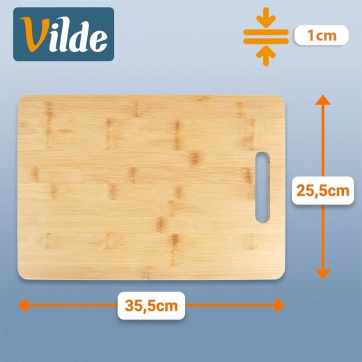 Bambusová struktura je pevná, odolná proti vlhkosti a nepohlcuje pachy. Hladký povrch je šetrný k čepelím nožů.