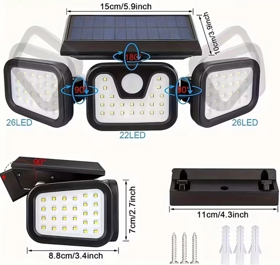 Tři nastavitelné světelné panely s celkem 74 LED pokryjí velkou plochu a zvýší bezpečnost kolem vašeho domu, garáže nebo zahrady.
