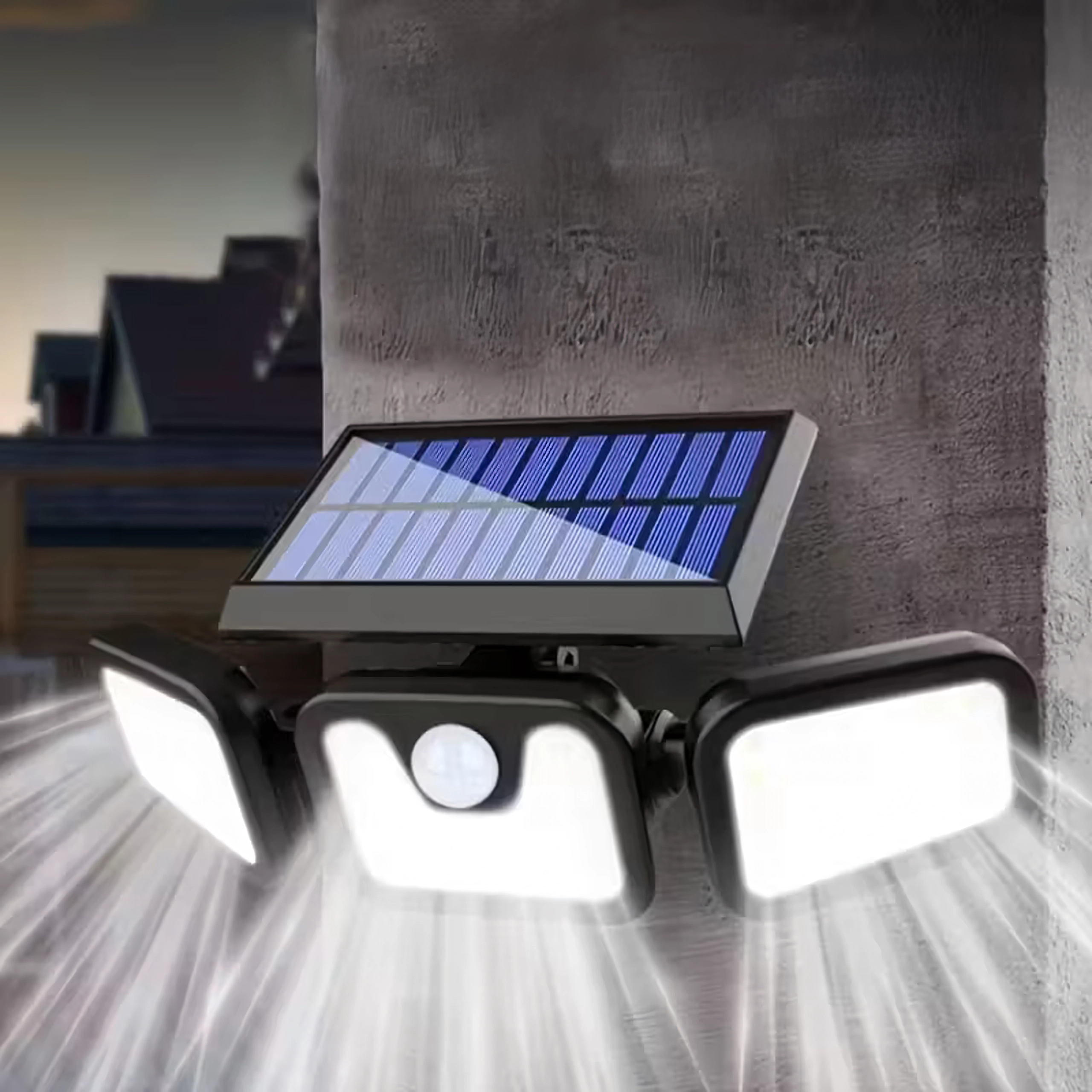 Chytré solární LED svítidlo s třemi nastavitelnými panely rovnoměrně nasvítí širokou plochu a zvýší bezpečnost kolem domu. Bezdrátová instalace bez nutnosti elektropřípojky, automatické rozsvícení po setmění nebo při detekci pohybu a dlouhá výdrž z něj dělají ideální volbu pro vstupy, garáže, zahrady i dvory.