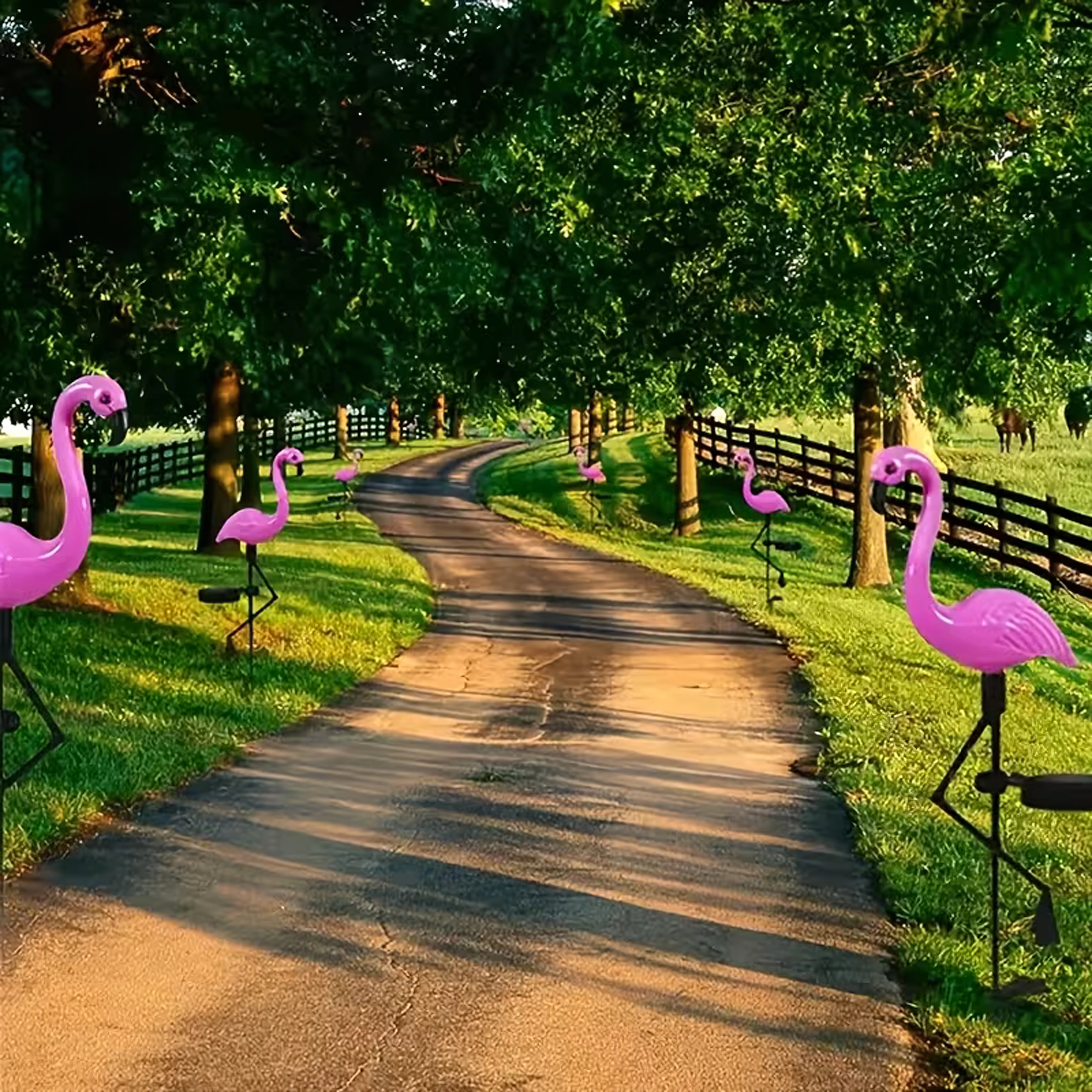 Výrazné růžové světlo plameňáků krásně vynikne podél chodníků, příjezdových cest i v okrasných záhonech.